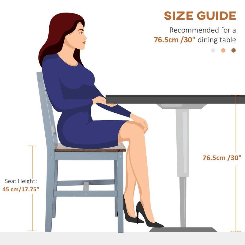 Wooden Frame: Both kitchen chairs are made from pine wood – strong and supportive. For prolonged use. Painted finish for gentle protection.