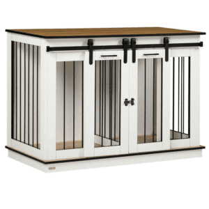 – Large tabletop: A wide and flat surface on top of this dog crate, ideal for displaying your favourite pieces or keeping supplies nearby.
