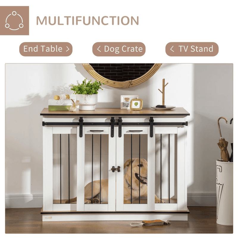 – Dog Crate Furniture for Large Dogs, Double Dog Cage for Small Dogs, White