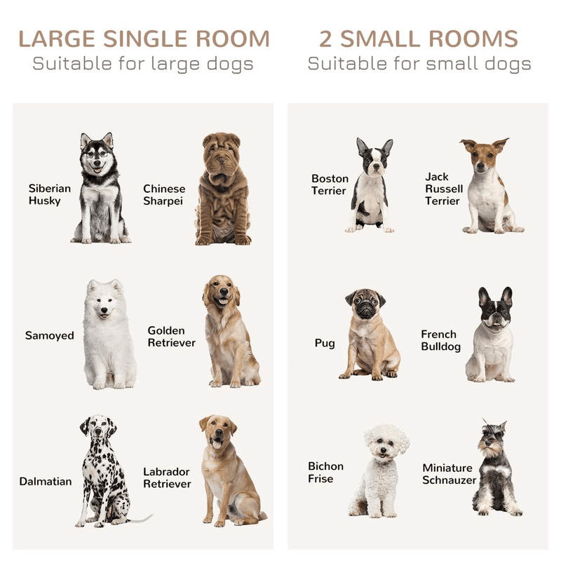 – Divider: Turn this dog cage into two separate rooms, suitable for two small dogs, or use it as a room for a large dog.