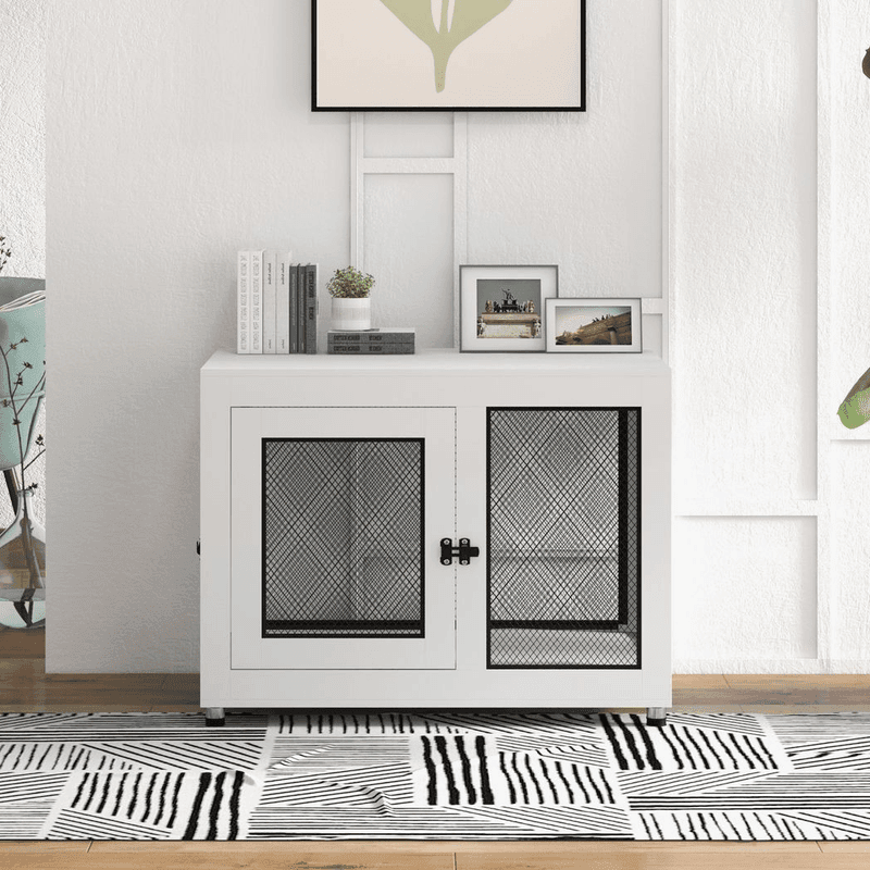 – Dimensions: 71.5H x 94W x 60Dcm. Inside cage: 63H x 90W x 57Dcm. Single door: 50.5H x 44Wcm. Cushion: 90L x 56W x 5Dcm. Leg height from the ground: 4cm. Side mesh grid: 13L x 8Wmm