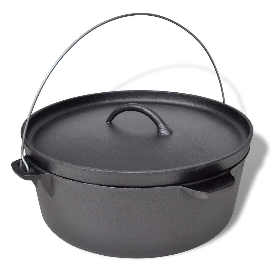 This Dutch oven, with a capacity of 11.3 L, is an ideal model for beginners and professionals alike. A Dutch oven can be used to make casseroles, stews, roasts, etc. This Dutch oven is delivered with a black carrying bag, a cover with a raised edge, a lid lifter and a stand. Made of high quality materials, this heavy-duty Dutch oven is highly durable. The included black carrying bag keeps the oven clean during transport. This Dutch oven is a versatile cooking tool for use at home or in the wild and will be ideal for cooking, baking and frying.