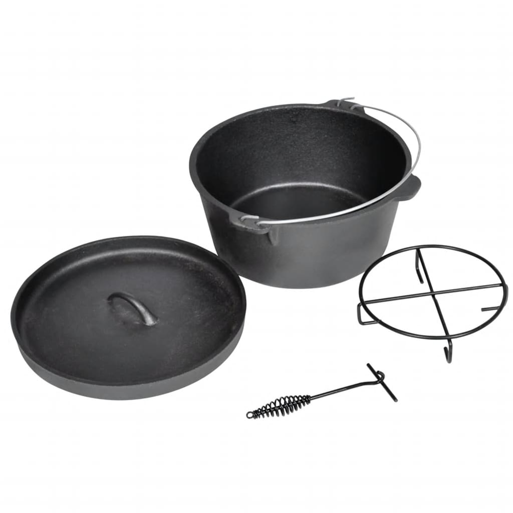 This Dutch oven of 9 QT has a capacity of 8.8 litres and has an inner diameter of 29.5 cm. This is an ideal model for beginners and professionals. The Dutch oven can be used to make casseroles, stews, roasts etc. A small Dutch oven complete with a black carry case, a cover with a raised edge, a lid lifter and a stand. The black carrying case allows the oven to stay clean during transportation. It is already burned preset. This Dutch oven is suitable for cooking, baking and frying. Ideal for camping.