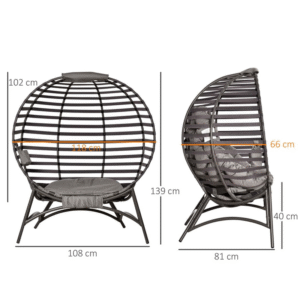 Comfortable and supportive single seater: Large size to relax with company. Fitted with inner seat and large padded cushion, can be relax into for hours on end. Great for gardens, porch areas and other favourite outdoor spots. Semi-steel frame: Metal outer edges to create an overall strong and supportive structure – made for repeated use and supports you as you relax. Four-legged metal base to keep you balanced and stable. Foldable: Fabric panels in-between metal structure allow egg basket to be folded and grouped together – easy to store away so it doesn’t get damaged. Easy to take with you. Dimensions: 139H x 118W x 75Dcm. Basket: 102H x 118W x 66Dcm.Maximum load: 120kg. Assembly required.