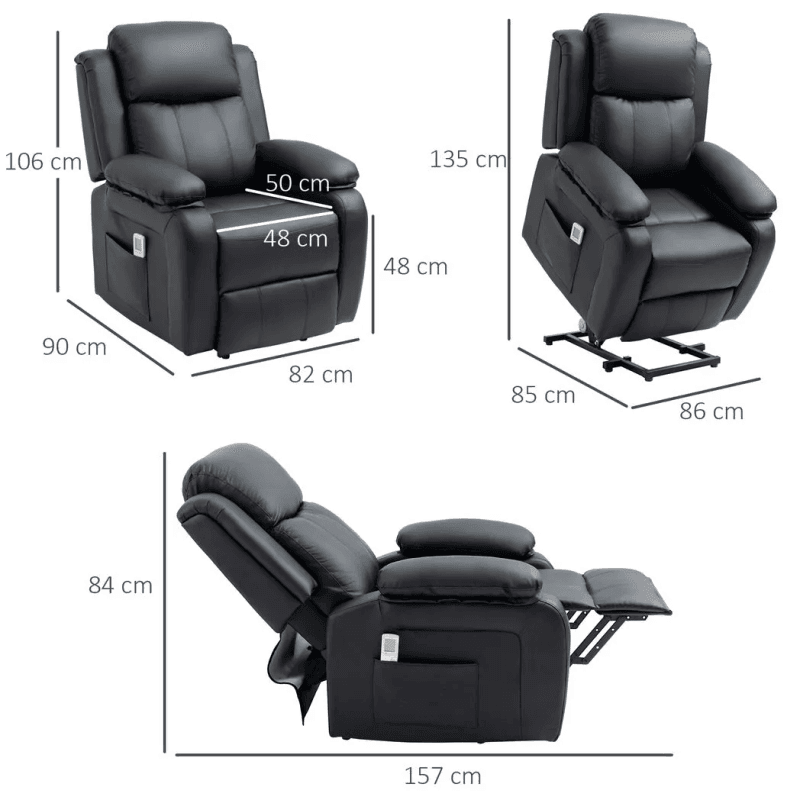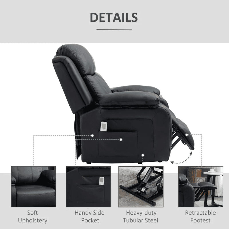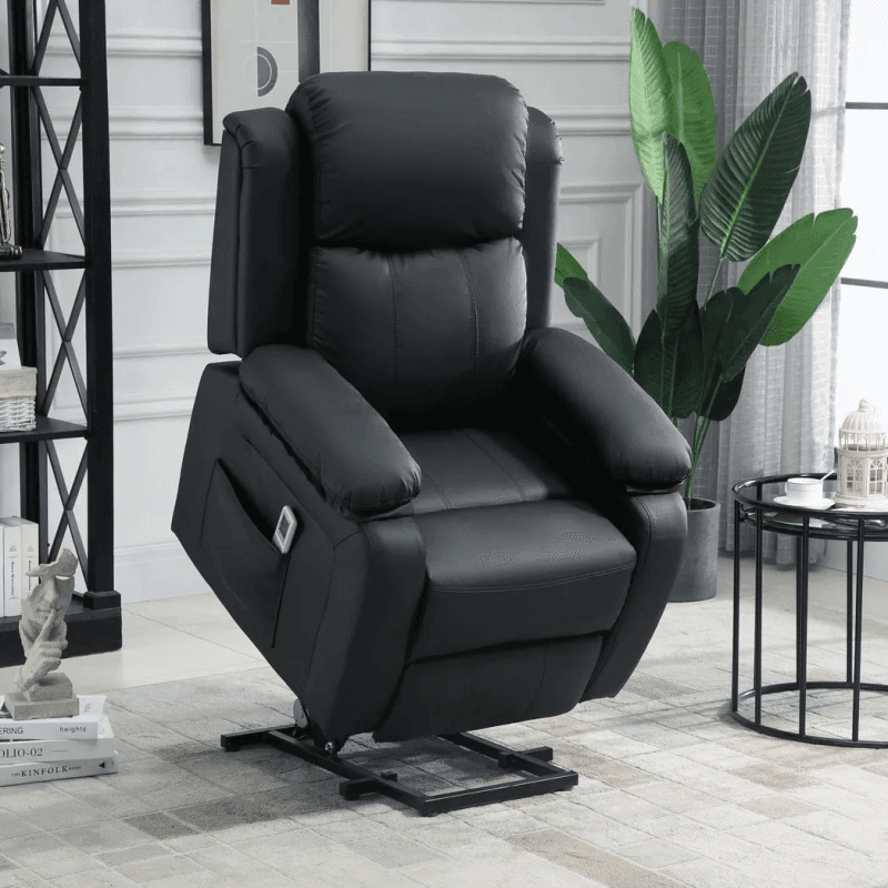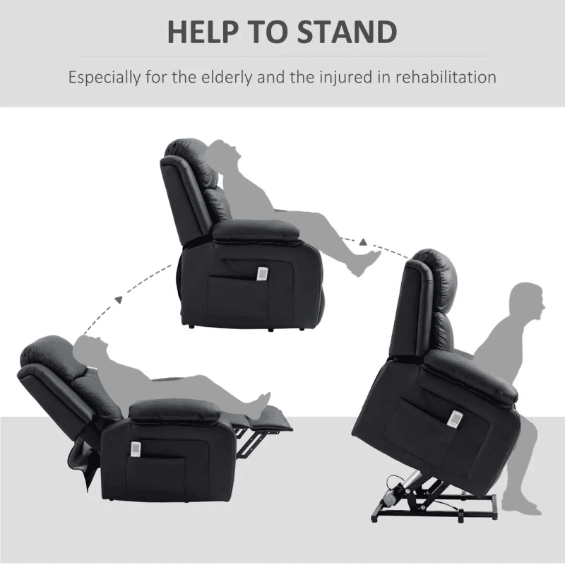 – Electric Power Lift Recliner Chair with Massage Vibration Side Pocket, Black