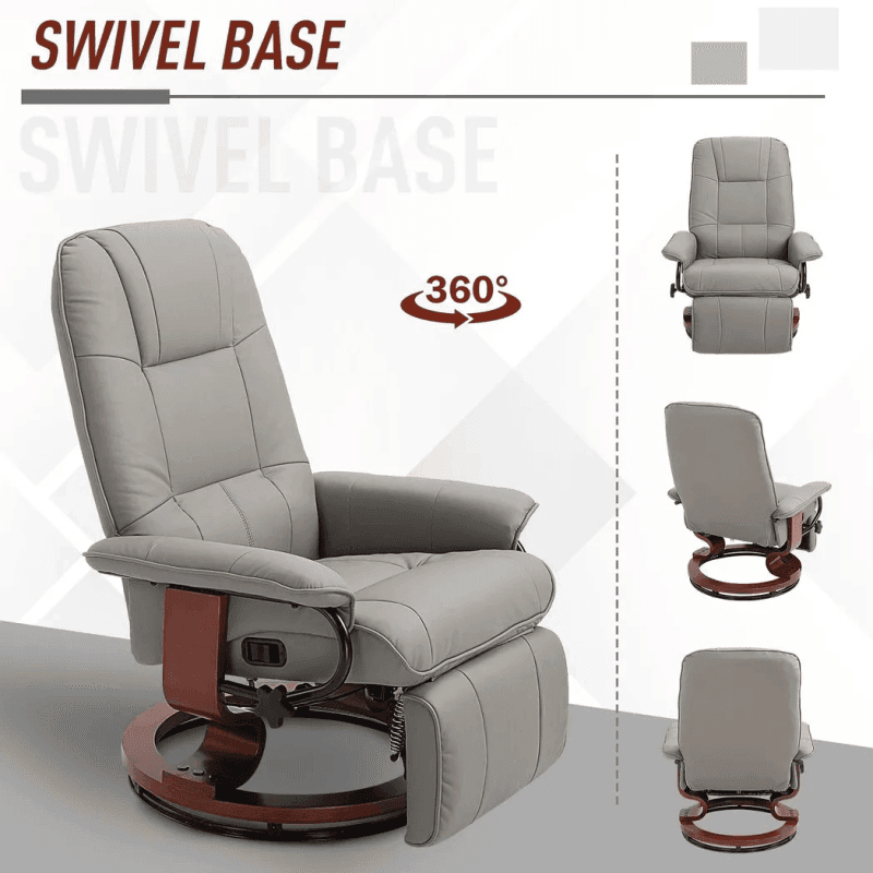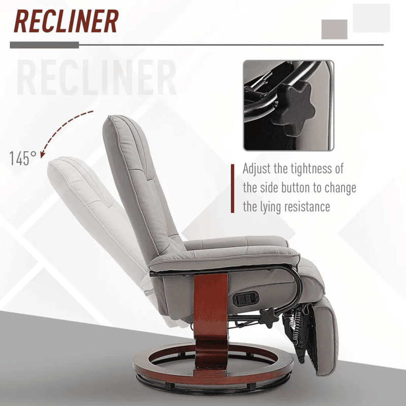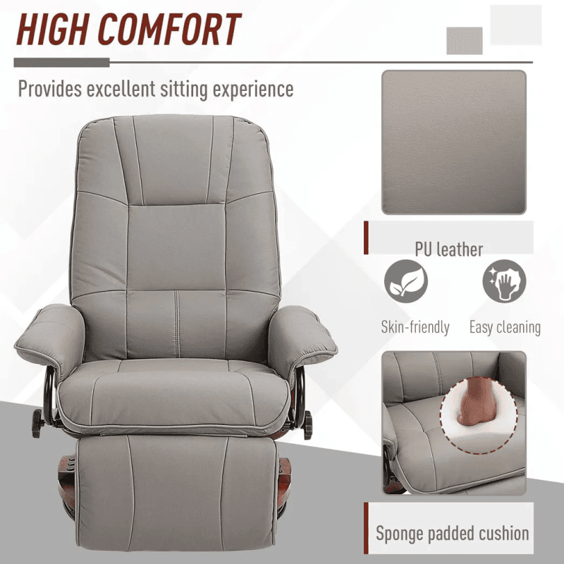 – “Ergonomic Recliner Sofa Chair PU Leather Armchair Lounger with Footrest, Grey”