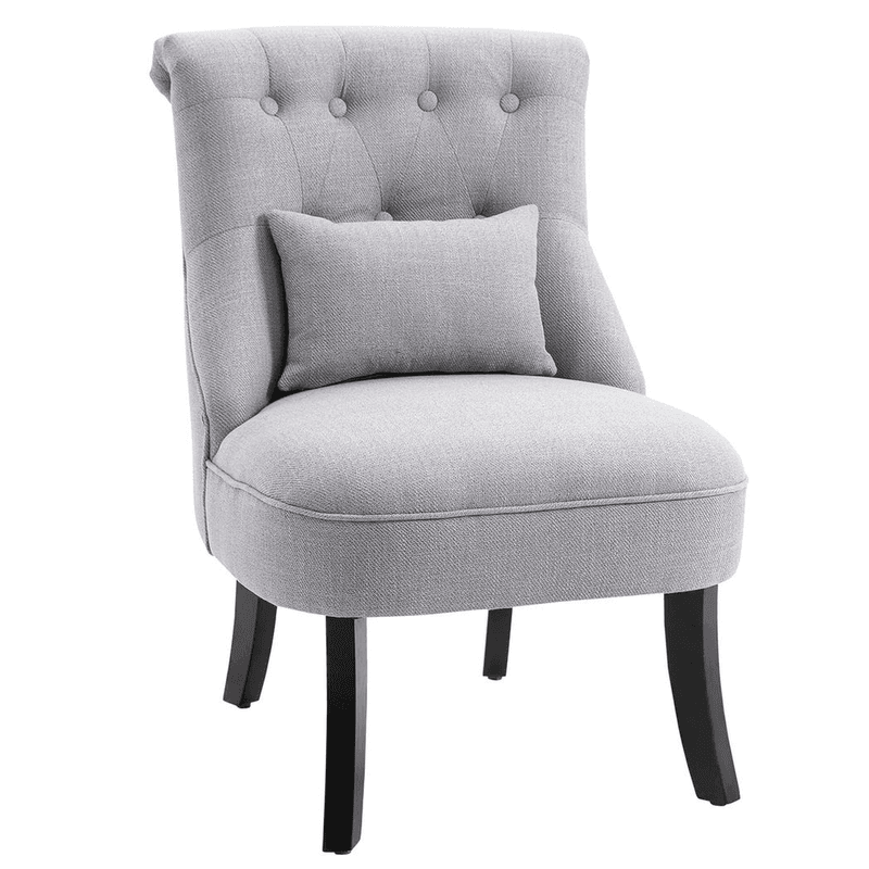 Stylish retro design: Combines linen-look upholstery, curved legs, button tufting and a scrolled back, this bedroom chair looks just as good as it feels.