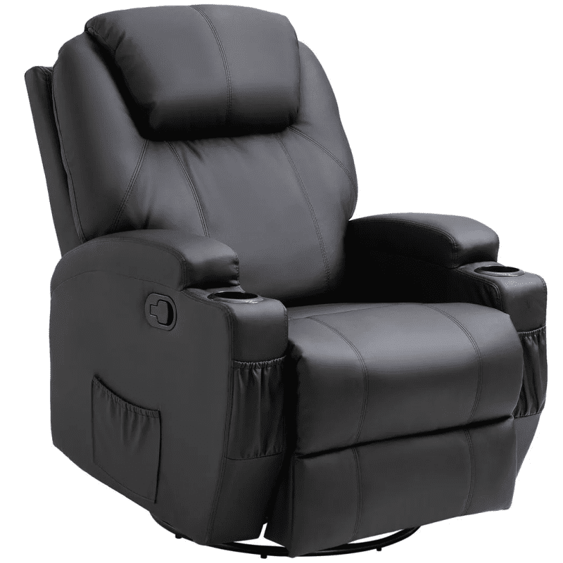 – Manually reclines: Pull the side handle to lean back for extra comfort and relaxation.