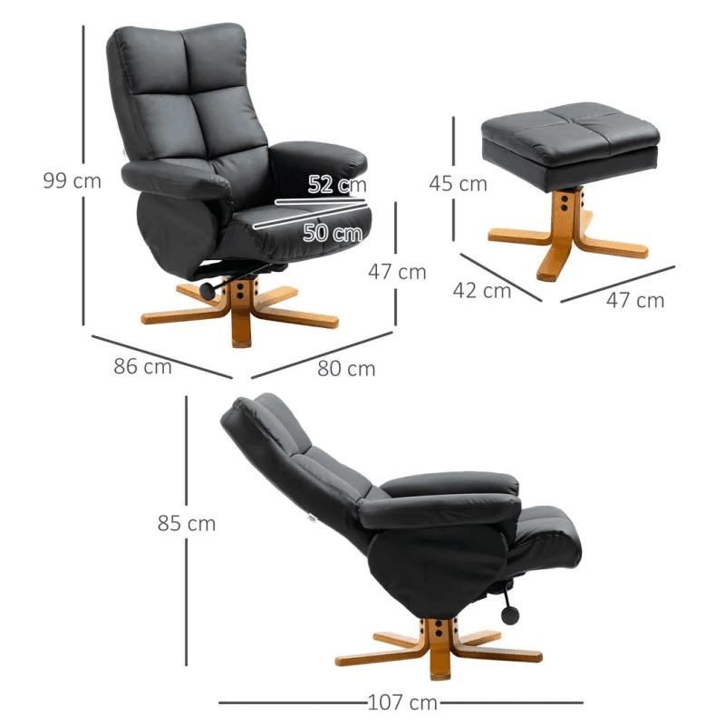 – “Faux Leather Recliner Chair with Ottoman Footrest Storage Space Black”