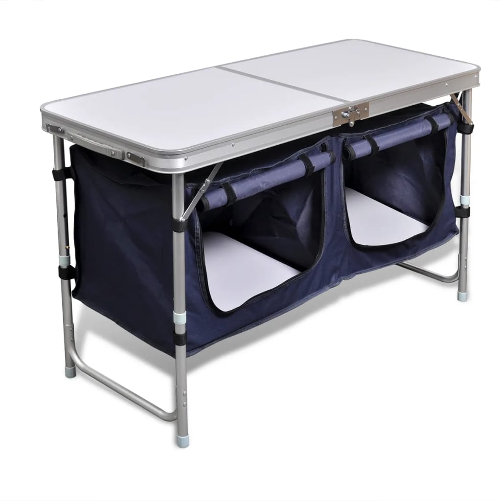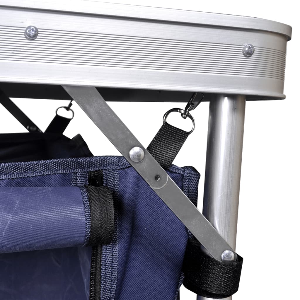 This foldable camping cupboard features a wide work surface and 2 storage compartments. It is perfect for outdoor use. It has a wide work surface and 2 storage compartments, which provides you enough room so that you can have everything you need within reach. The zippered door of the cupboard can be rolled up and down easily, which protects your ingredients or kitchen ware from dirt. The camping cupboard is light in weight. Thanks to the folding design, it is easy to transport and can be stored away quickly when not in use. The carrying handle makes it very easy to bring the cupboard with you when going out to have a picnic or camping trip. Thanks to the sturdy structure, this camping cupboard has a high load capacity up to 30 – 50 kg. Thanks to the metal frame, the robust MDF tabletop and the high-quality 600D oxford fabric, it is highly stable and durable. And the PVC coating also ensures the camping cupboard a long service life.