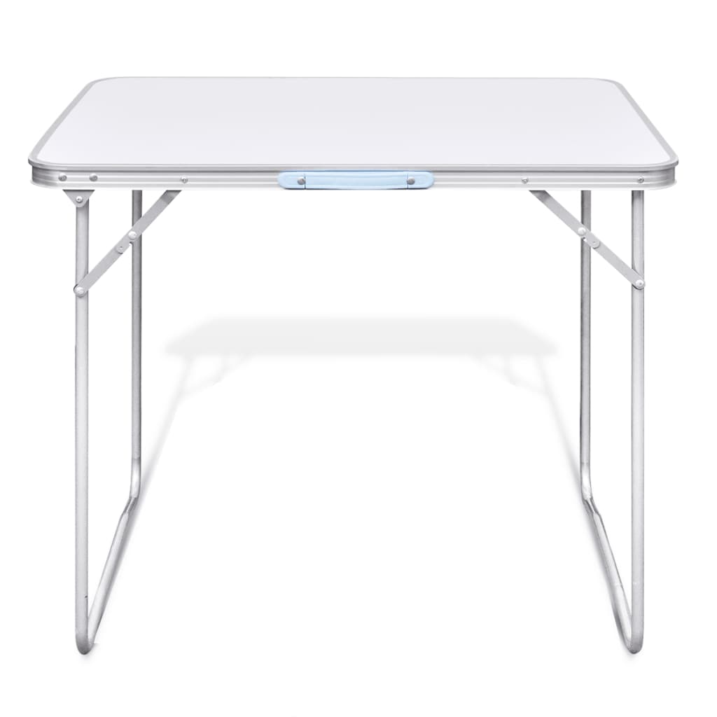 This foldable camping table with practical carrying handle will come in handy in kitchens, on patios, in gardens, and on picnics or camping trips. The camping table is light in weight. Thanks to the folding design, this camping table is easy to transport and can be stored away quickly when not in use. The carrying handle makes it very easy to bring the table with you when going out to have a picnic or camping trip. Thanks to the sturdy structure, this camping table has a high load capacity of up to 30 – 50 kg. Thanks to the metal frame and the robust MDF tabletop, it is highly stable and durable.