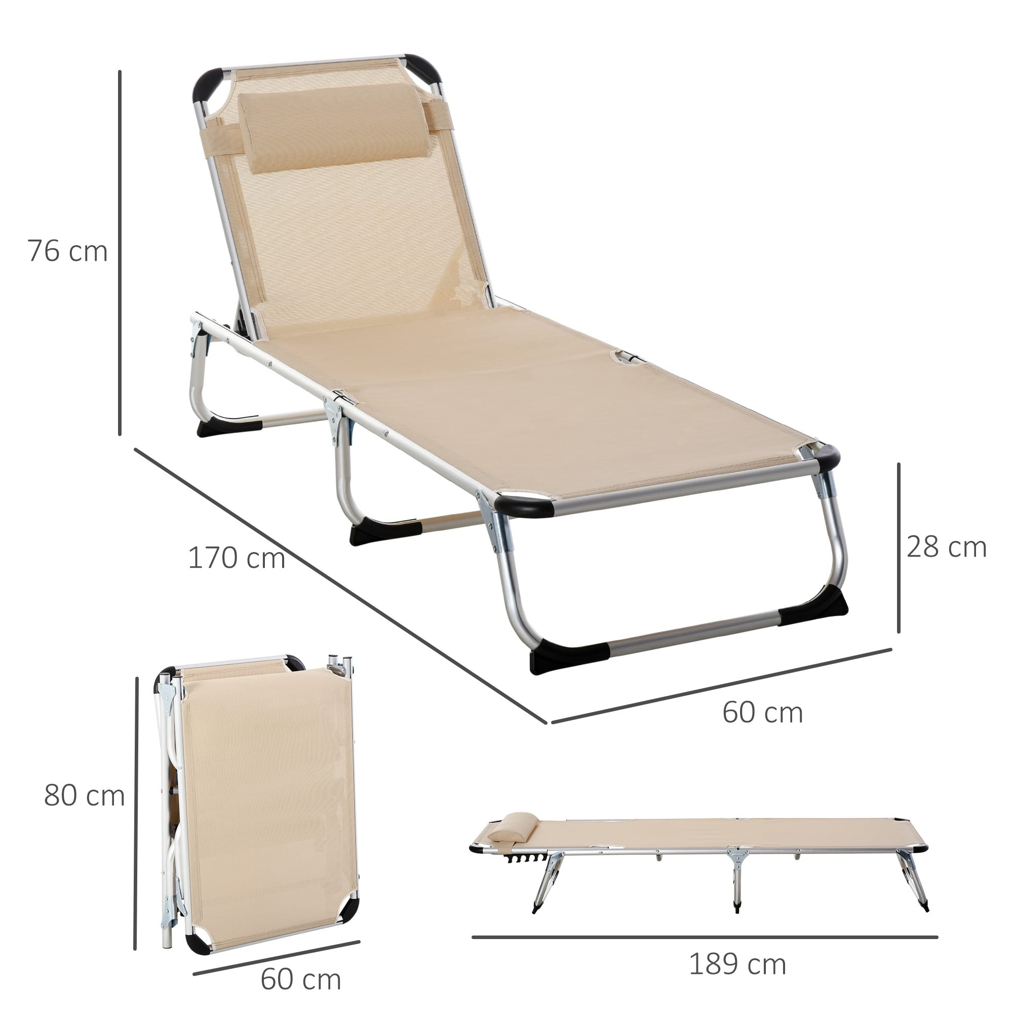 There’s a texteline fabric seat stretched on the frame to hold your body, with a removable pillow on the top to support your head/neck. When not in use, this lounger can be folded into a third of the size, making it easy to carry.
