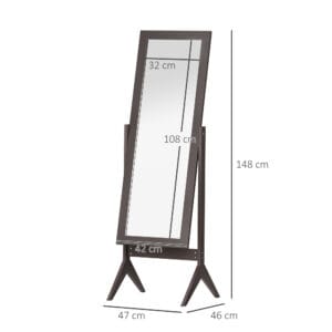 DIMENSIONS: 148H x 47W x 46Dcm. Mirror: 118L x 42W x 1.8Dcm (with frame), 108L x 32W x 0.3Dcm (without frame). Base: 95cm.