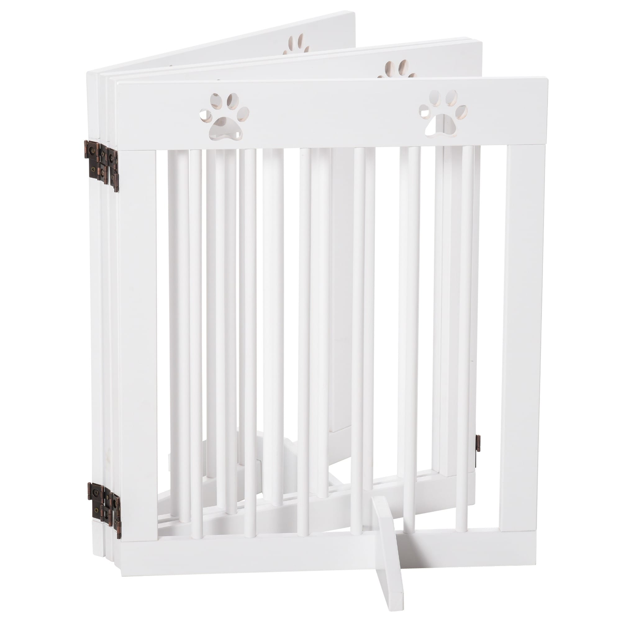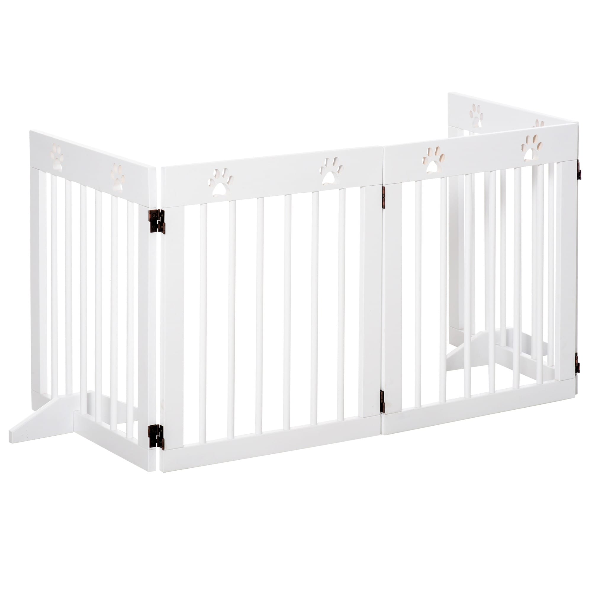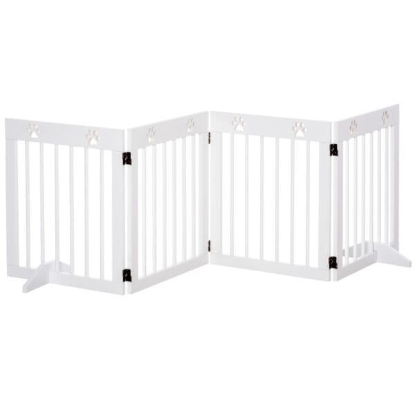 Freestanding Pet Gate 4 Panel Folding Wooden Dog Barrier with Support Feet”