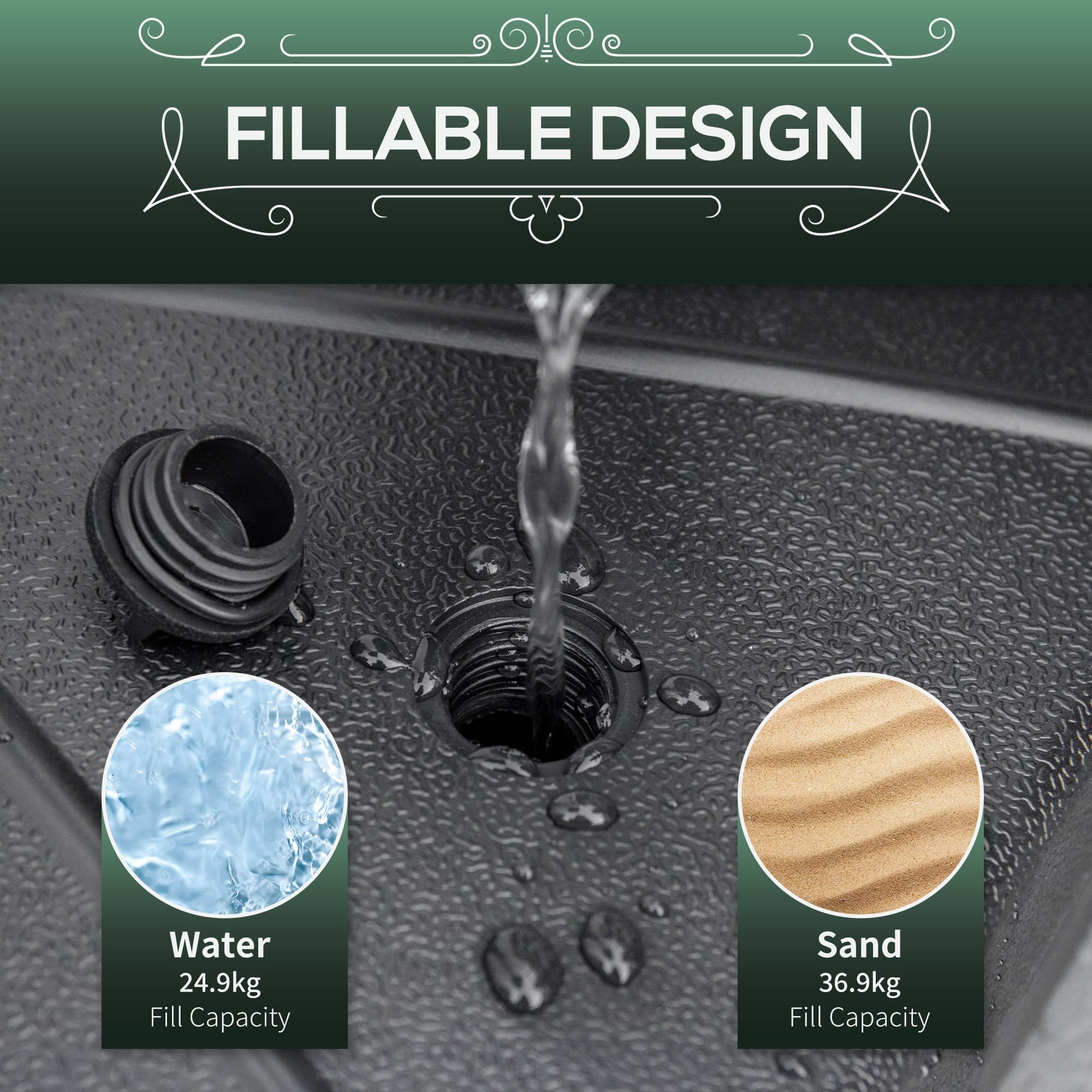 – “Garden Parasol Base Stand Up to 28kg Water or 40kg Sand Filled, Black Outsunny”