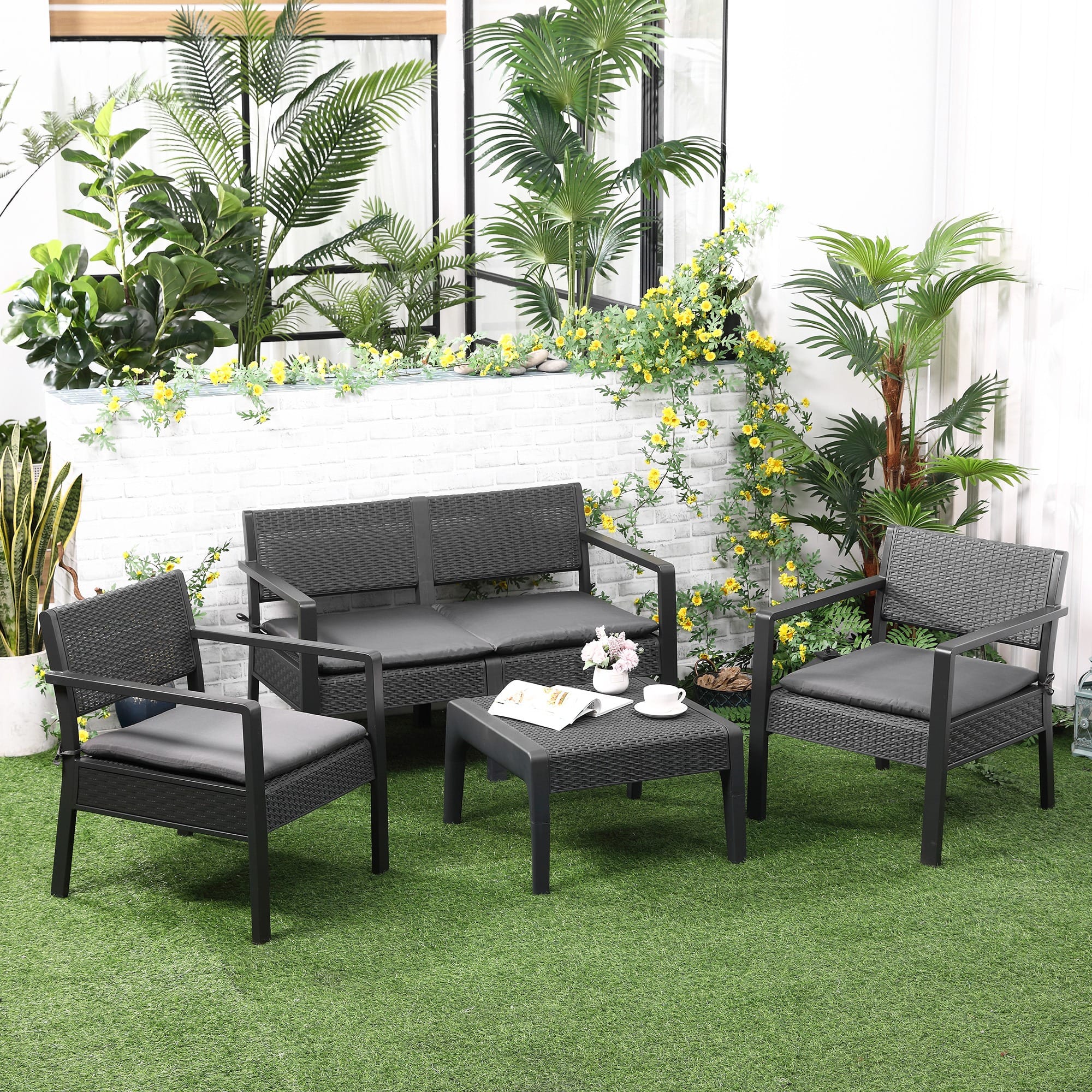Plastic pieces are strong, made into a stylish rattan-weave look