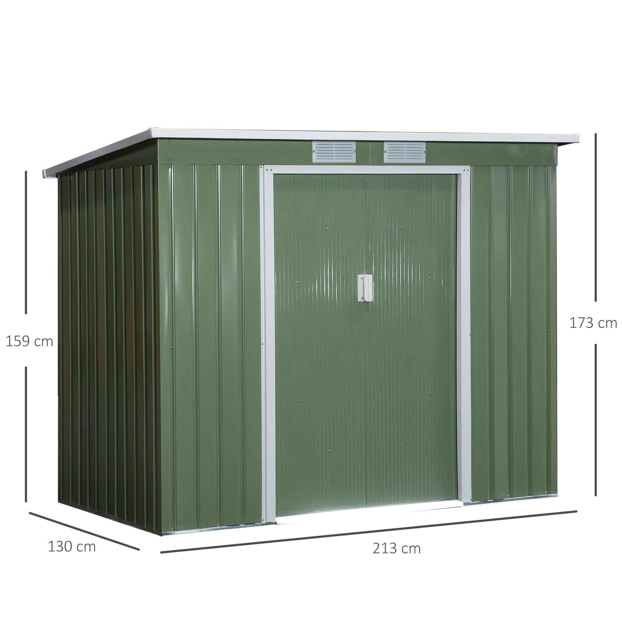 This garden shed from Outsunny is made of high-quality steel, which is durable, resistant to corrosion and will stand proudly in your garden. It is fitted with an inclined steel roof to prevent water build-up, a double door for easy access and two vents for air flow inside to prevent mould and humidity. And the galvanized steel foundation can elevate the tools and equipment and protect them from humidity from ground. Great solution to store all your gardening equipment or just a space for you to store any items you wish.