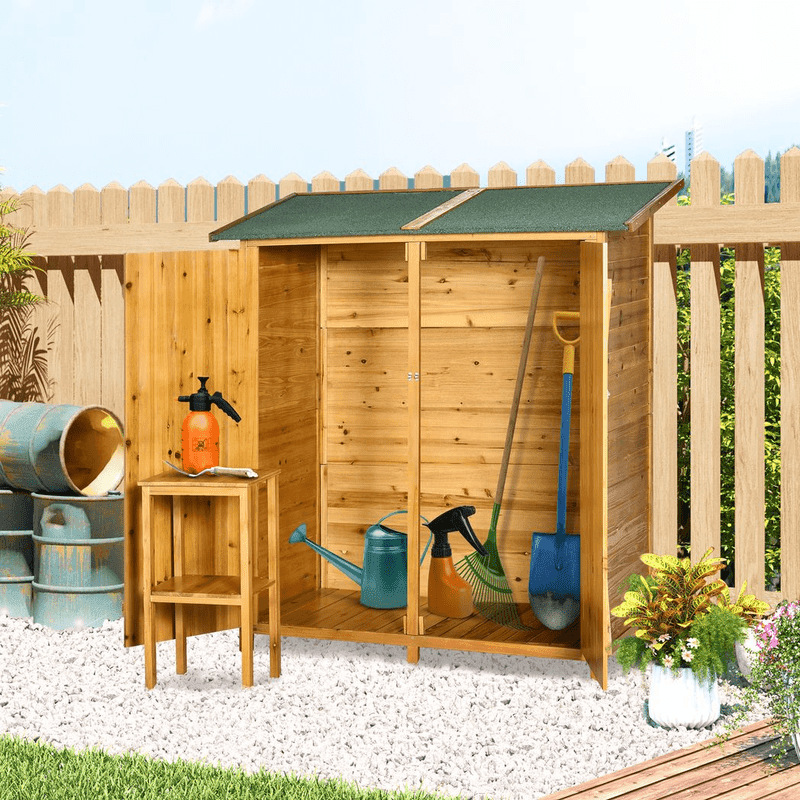 – Garden Storage Shed Tool Organizer w/ Table, 140x75x157cm, Natural