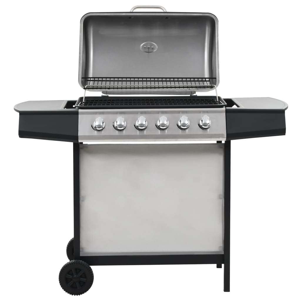 This gas BBQ grill has 6 large cooking zones and is ideal for creating an outdoor feast for your family and friends. It will make your outdoor cooking experience sizzle, effectively turning your backyard into a second kitchen! The gas grill features a stylish and functional design. It has 6 burners and a heavy-duty hood with a built-in thermometer which accurately displays the cooking temperature. Two side panels offer additional space for making sauces or your favourite side dishes. A removable grease drip container is also included, which is easy to clean. Made of heavy-duty materials, the grill is very durable. The cabinet underneath provides large space to store other supplies. Thanks to the 2 sturdy castors, the grill is easy to move around. To connect the barbecue to the gas cylinder, a gas hose and a proper pressure regulator are required, which are not included in delivery.
