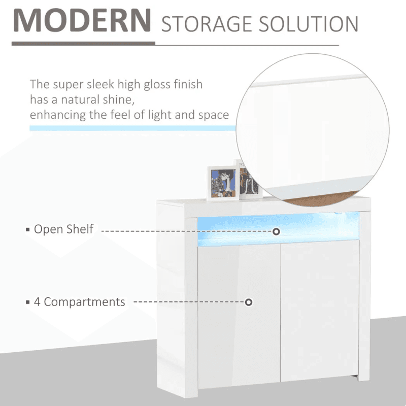 PARTICLE BOARD STRUCTURE: Durable composition for everyday use, finished with a modern and smooth high glass finish. Anti-tipping straps on back for safety.