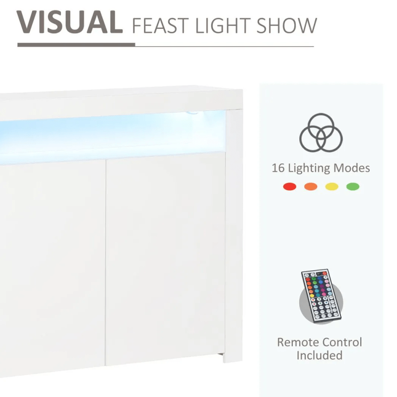 LED LIGHT TRIM: Built-in on the shelf, it can switch between 16 different modes – easy to change your mood and the ambience. Remote included for use at a distance.