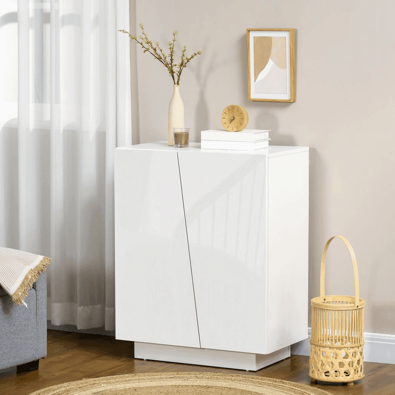 Modern design: Diagonally split doors and a high gloss finish – this small sideboard is a fresh, contemporary addition to your home and beyond.