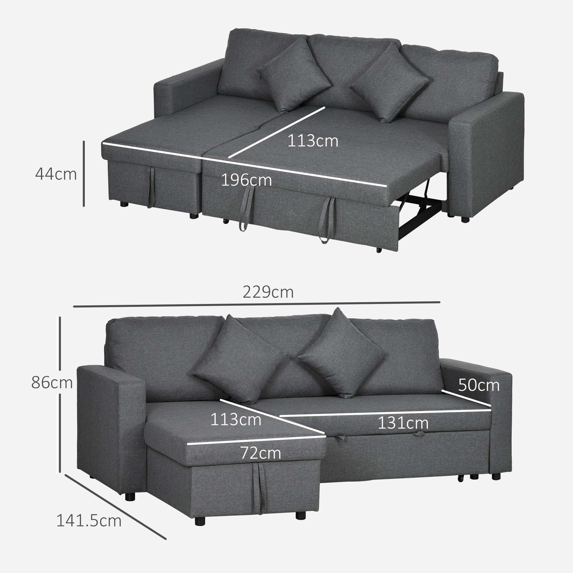● Sofa Dimension: 229W x 141.5D x 86Hcm;