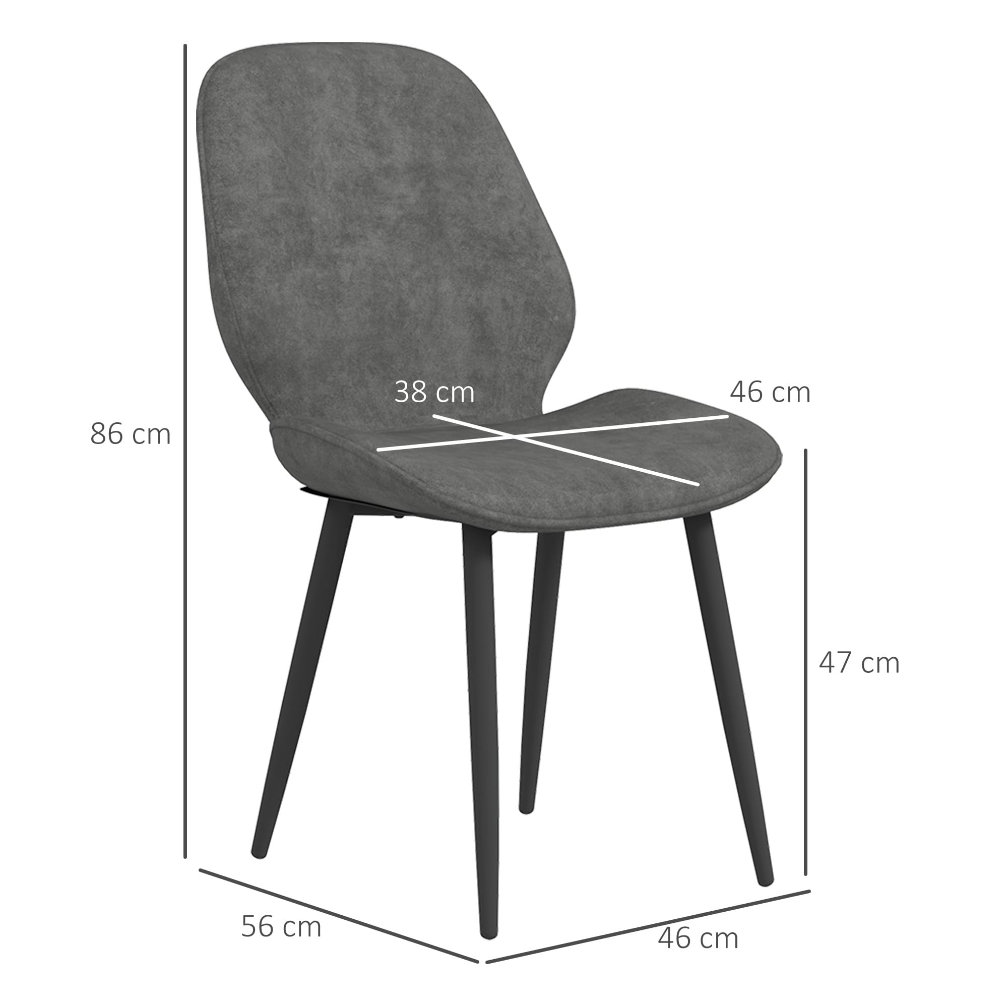 Relaxed style – two times. These set of two HOMCOM dining chairs bring effortless matching style into your home. Armless design and slanted back make it a pleasure to sit on. The foam padding for comfort, with velvet-feel upholstery soft on the skin. Powder coated steel legs for strong support, complete with handy anti-slip feet.