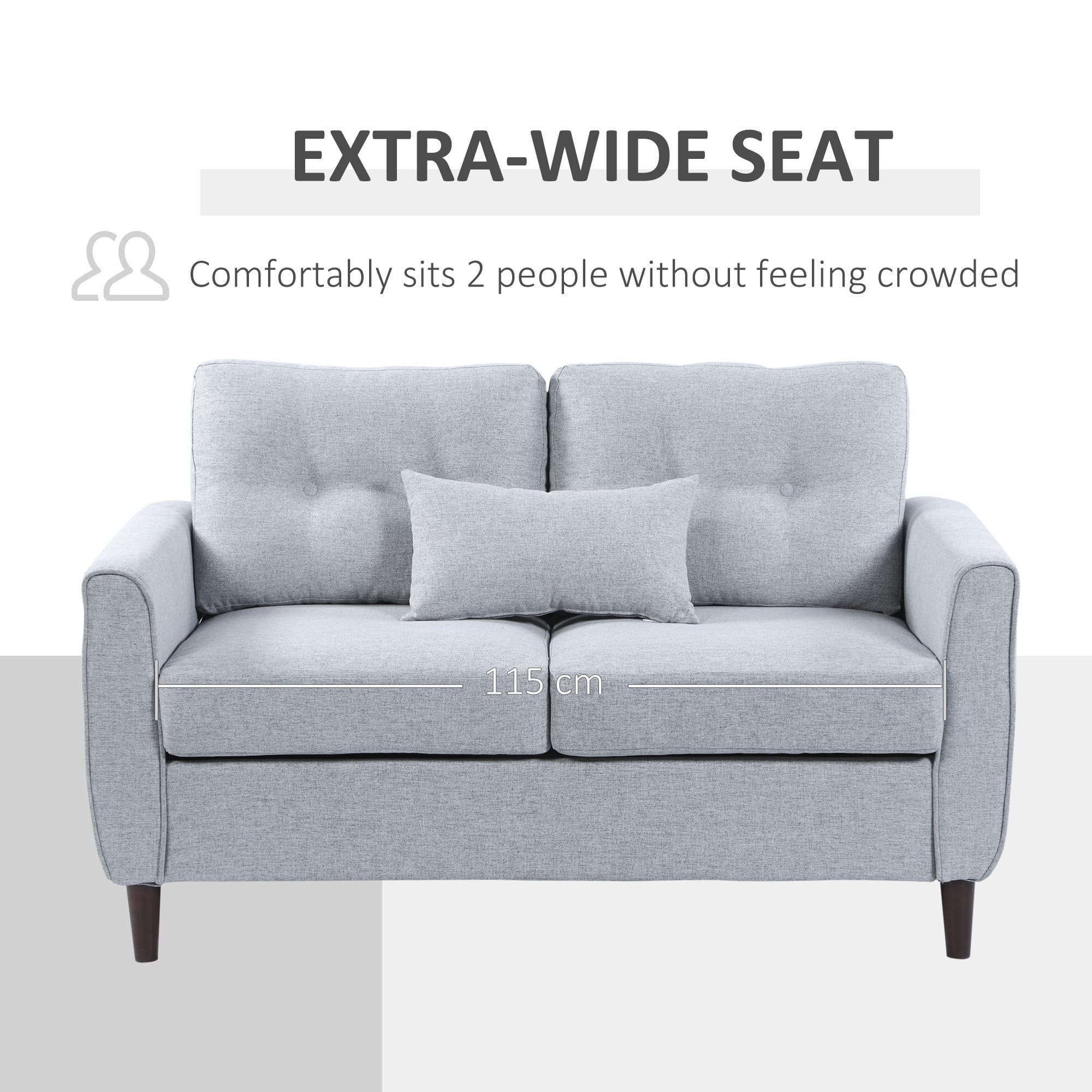 Comfortable: Thick sponge-filled seat and back cushions, simply sit down and sink in. Linen upholstery covered the two seater sofa is breathable and smooth against the skin.