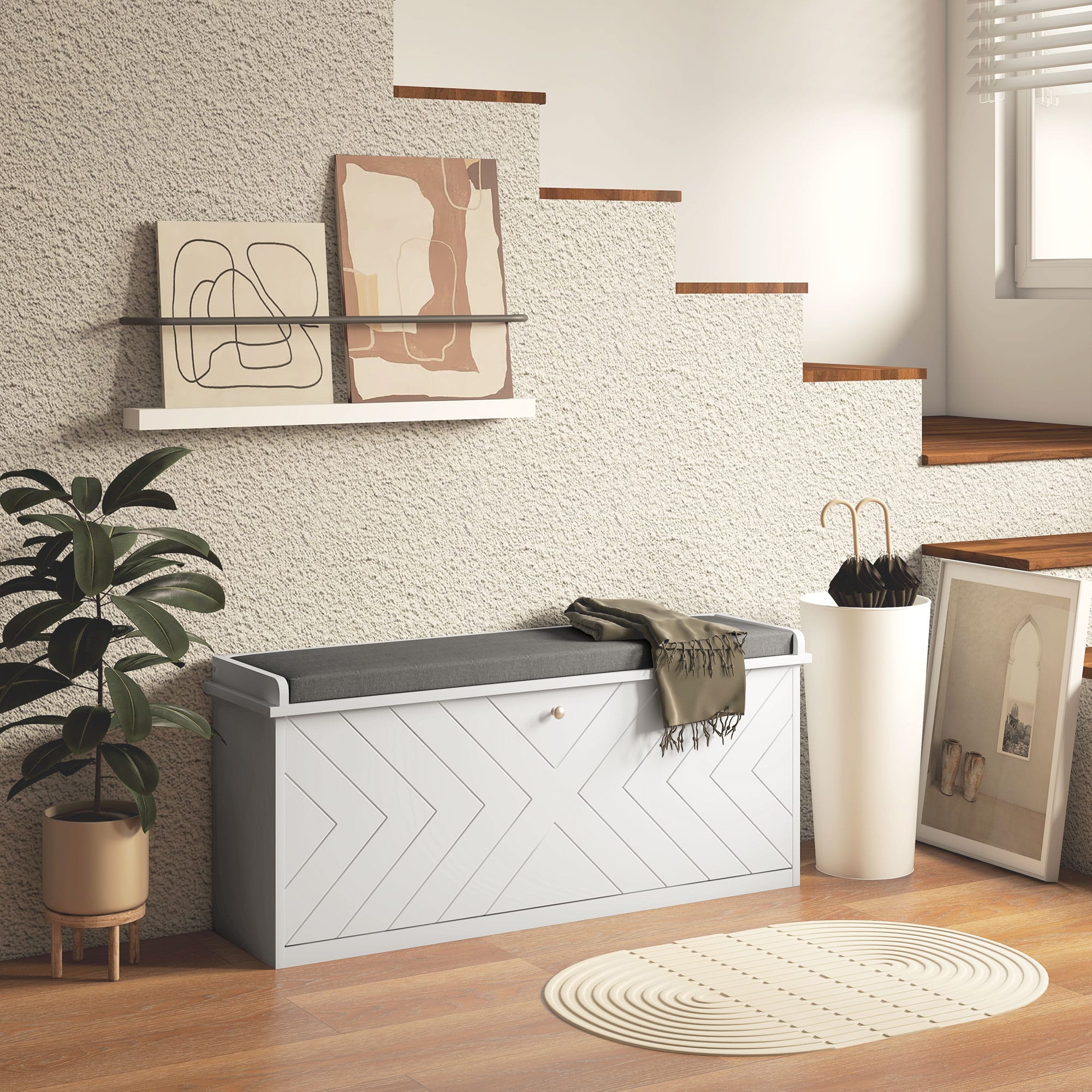 ● Hallway bench stores 10 shoe pairs, maximum size 9.5;