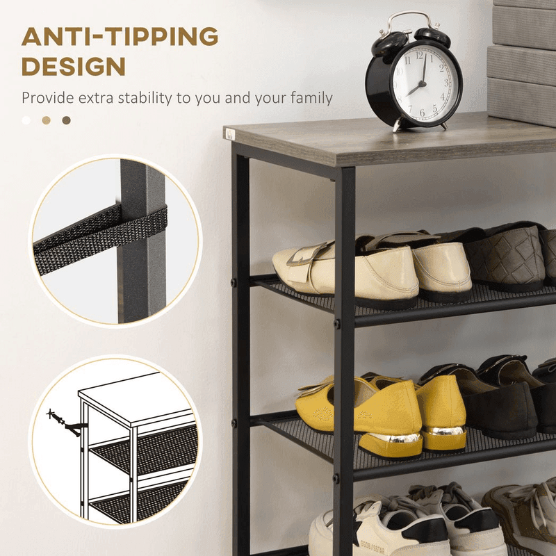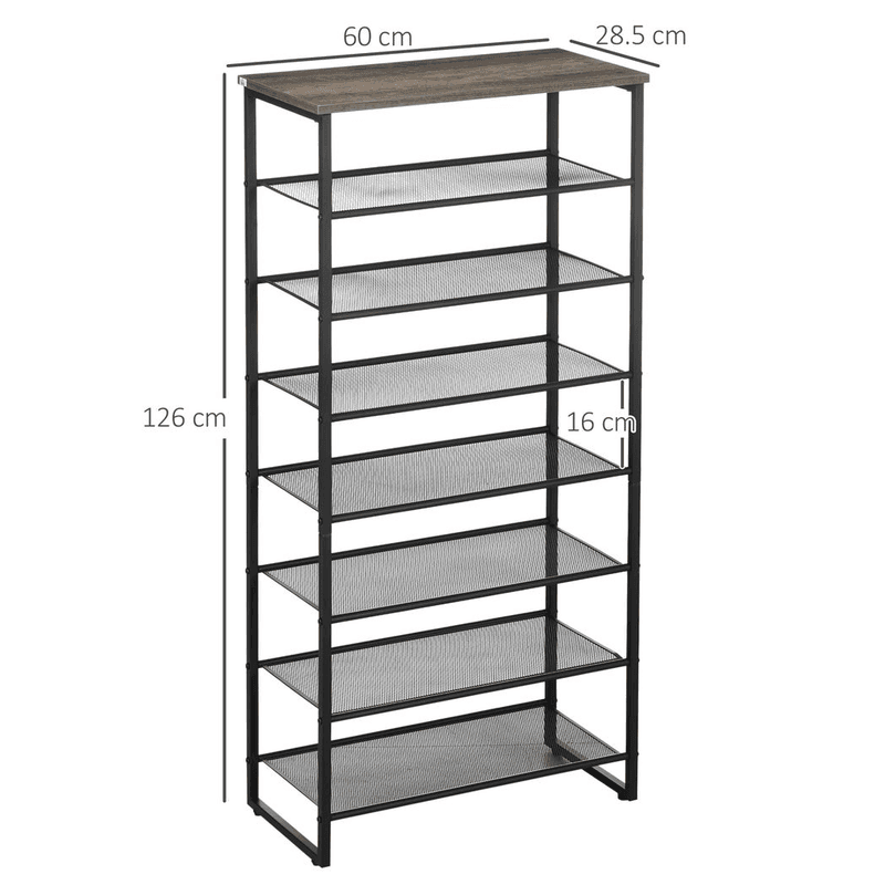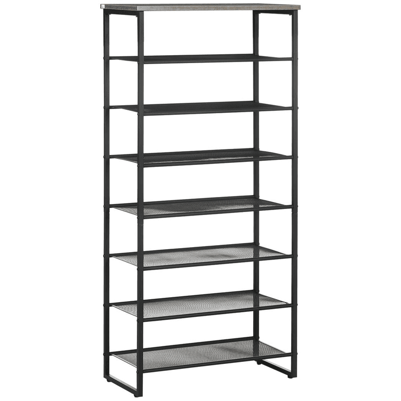 Seven-shelf design: Shoe rack has plenty of room for the whole family. Each shelf of this shoe stand holds up to three pairs. Metal shoe rack structure: Steel frame makes this a hallway storage unit which supports shoes and boots in place. Mesh shelves: Air circulates better around this narrow shoe rack, keeping items fresh. Tall shoe rack design: Doesn’t take up too much space, making it suitable for smaller places in the hallway, living room, bedroom and closets. Dimensions: 126H x 60W x 28.5Dcm. Maximum load 40kg. Easy to assemble.