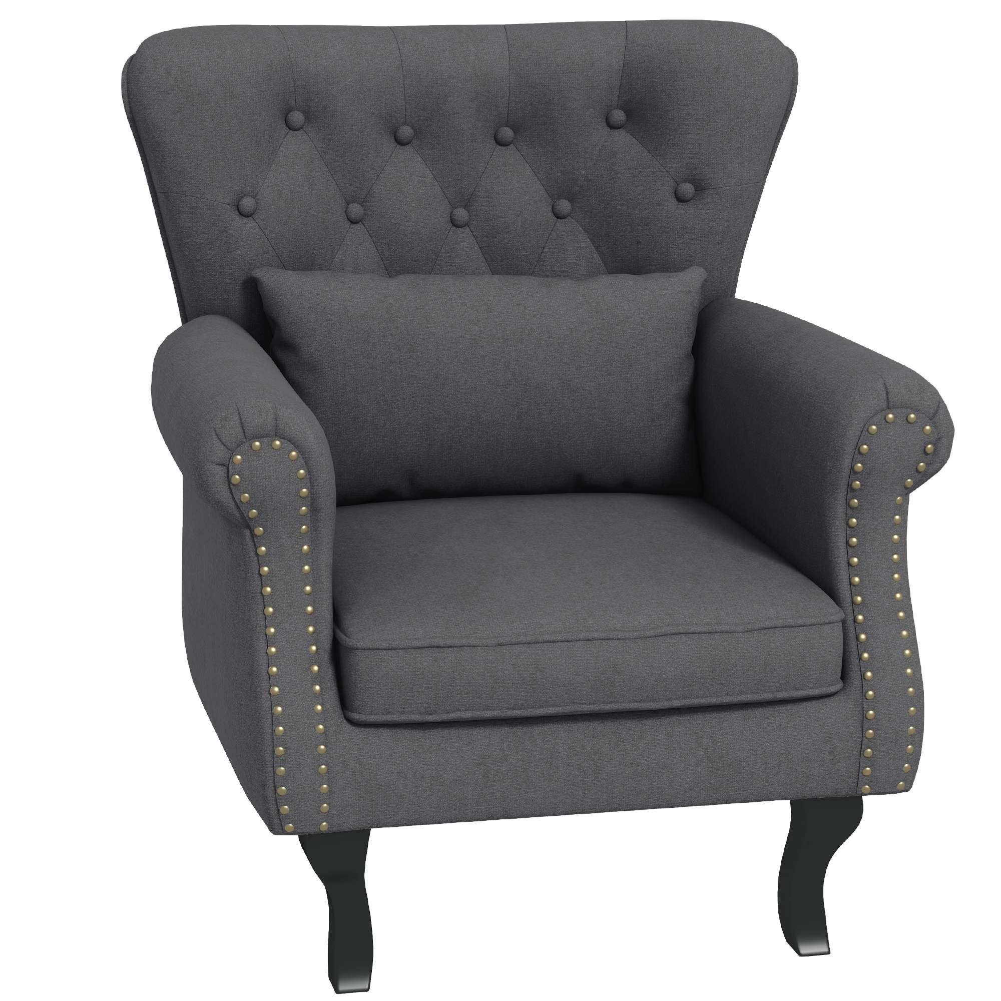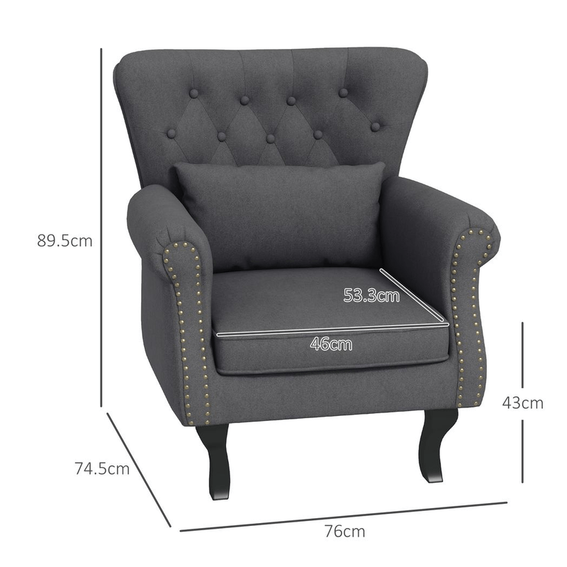 – HOMCOM Vintage Armchair Wingback Accent Chair with Nailhead Trim, Dark Grey