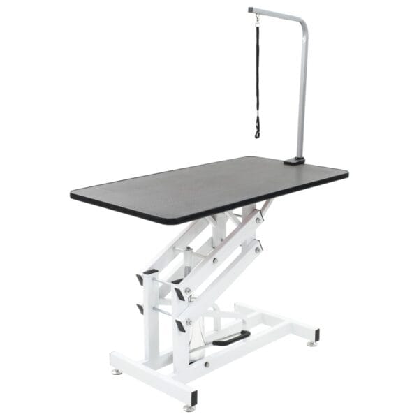 This hydraulic grooming table is perfect for home and mobile groomers, dog shows etc. It features a non-slip tabletop and a powder-coated iron frame with adjustable grooming arm and feet. This professional hydraulic grooming table is versatile and brings comfort to any grooming situation. The table top with an anti-skid rubber surface creates a comfortable surface for your pets to stand on while you groom. Also, the heavy-duty quality grooming arm is convenient to dismount when not in use for easy storage and transport, not to mention the hydraulic design which allows the feet to adjust to an ideal height. The adjustable grooming loop restrains pets safely and features an improved locking slide clasp. Delivery includes 1 x grooming table, 1 x clamp-on adjustable arm and 1 x grooming loop.