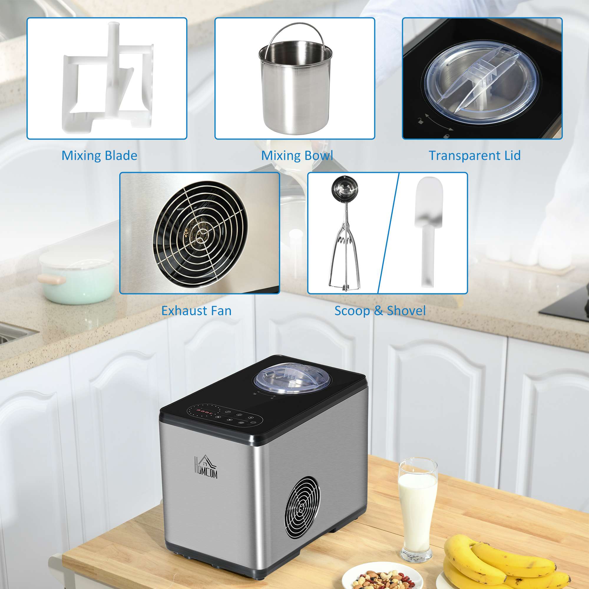 Comes with measuring cup, ice cream scoop and shovel
