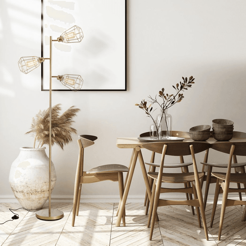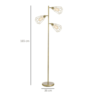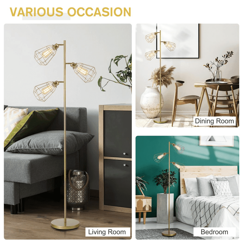 – “Industrial Steel Birdcage Floor Lamp w/ 3 Lights Round Base Switch Gold”