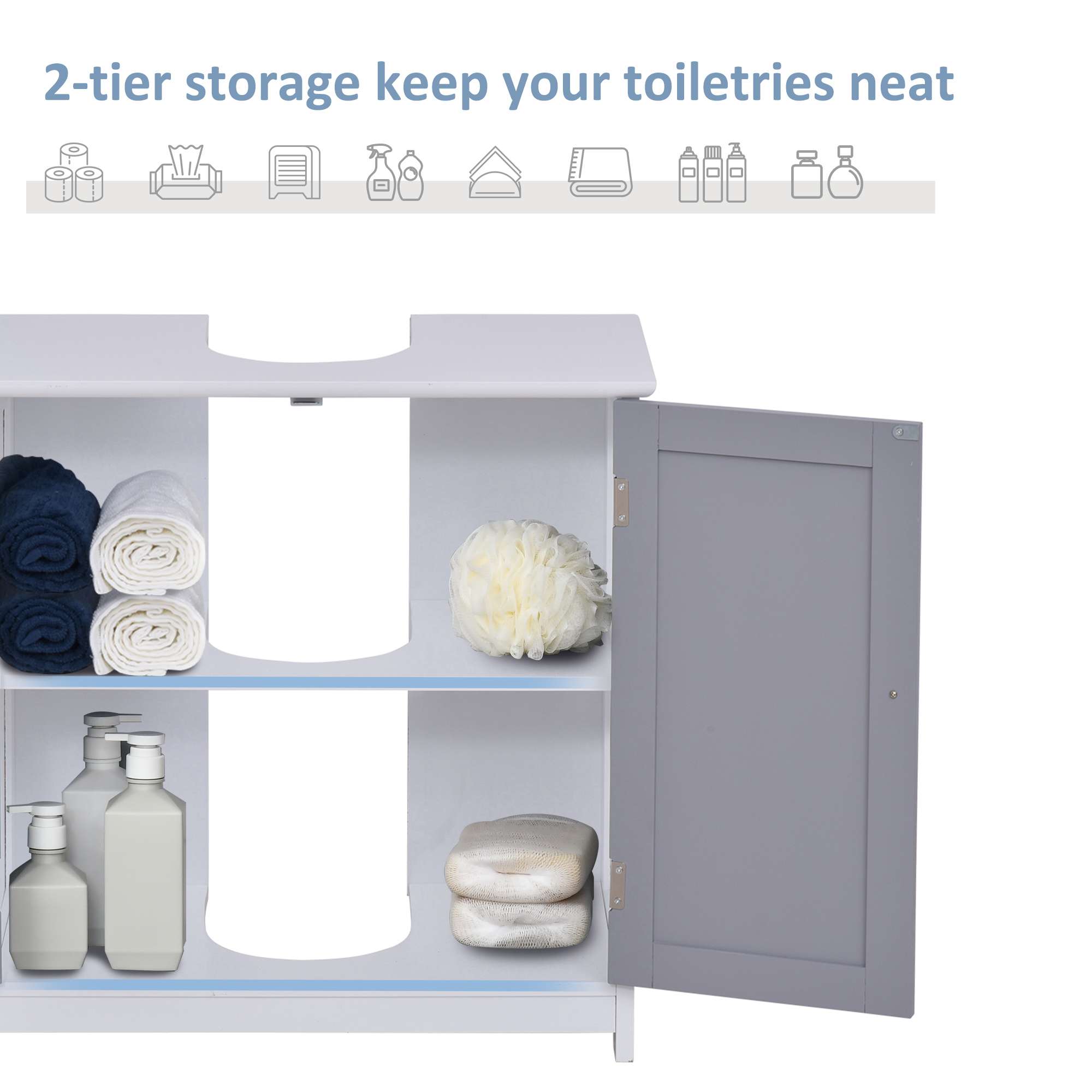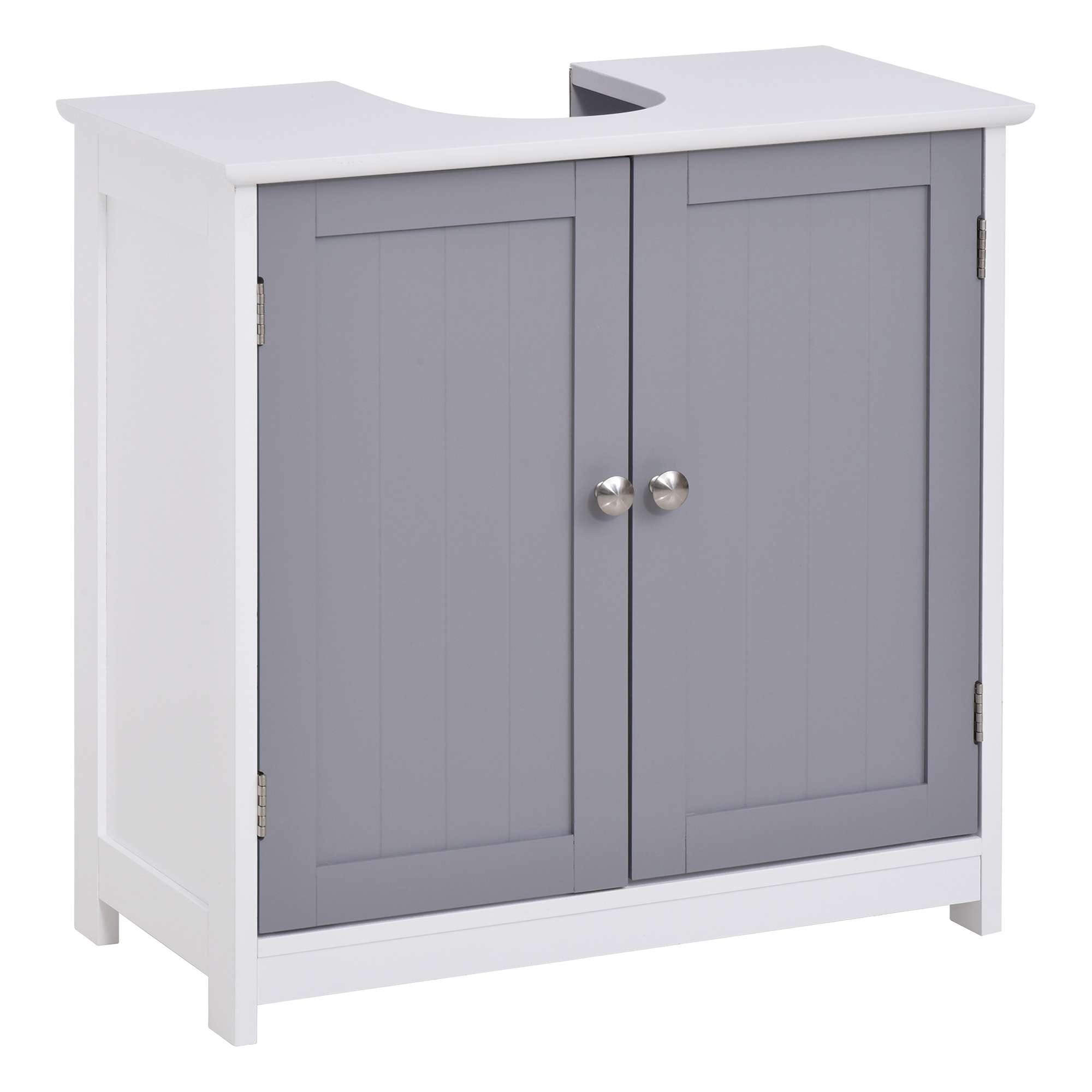 Kleankin 60x60cm Under-Sink Storage Cabinet with Adjustable Shelf – Grey White”