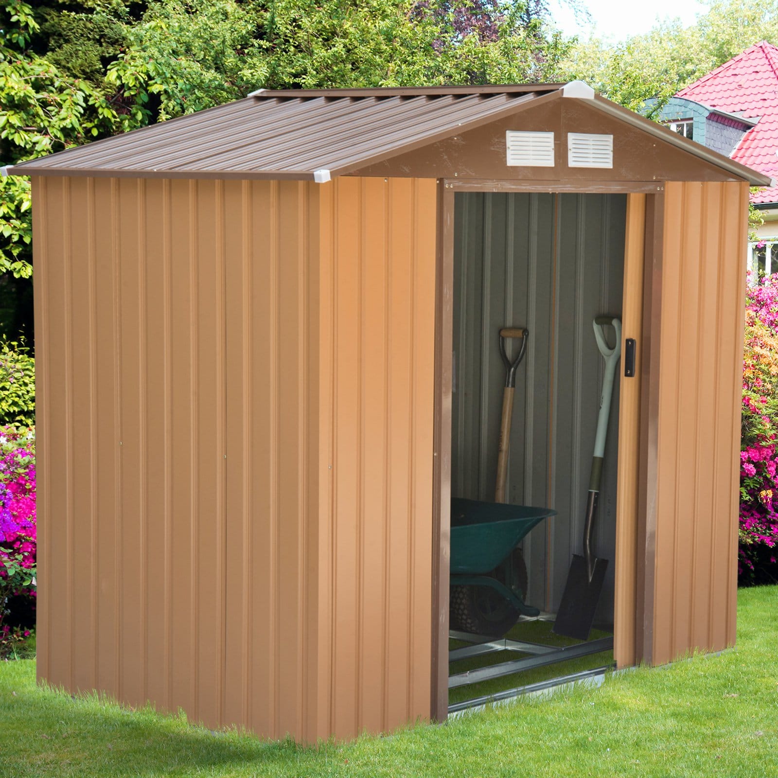 Keep your garden equipment and outdoor essentials locked away securely with this fantastic 185 x 127cm outdoor shed from Outsunny. Built from galvanised steel for enduring reliability, it is made with a lockable double sliding door on the front for easy access, four vents for air to circulate and prevent moisture build up, as well as a sloped roof so water doesn’t build up and stagnate. It’s finished with a protective weather coating and a floor foundation for it to stand level on the ground. The perfect home for all your outdoor tools and gear.