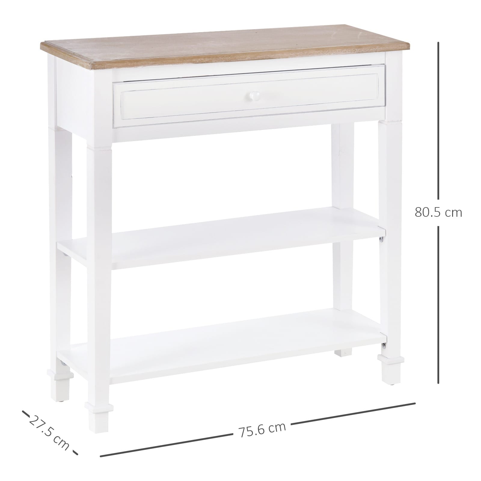 – Features a top drawer, two shelves, and a surface top for lots of storage and display room