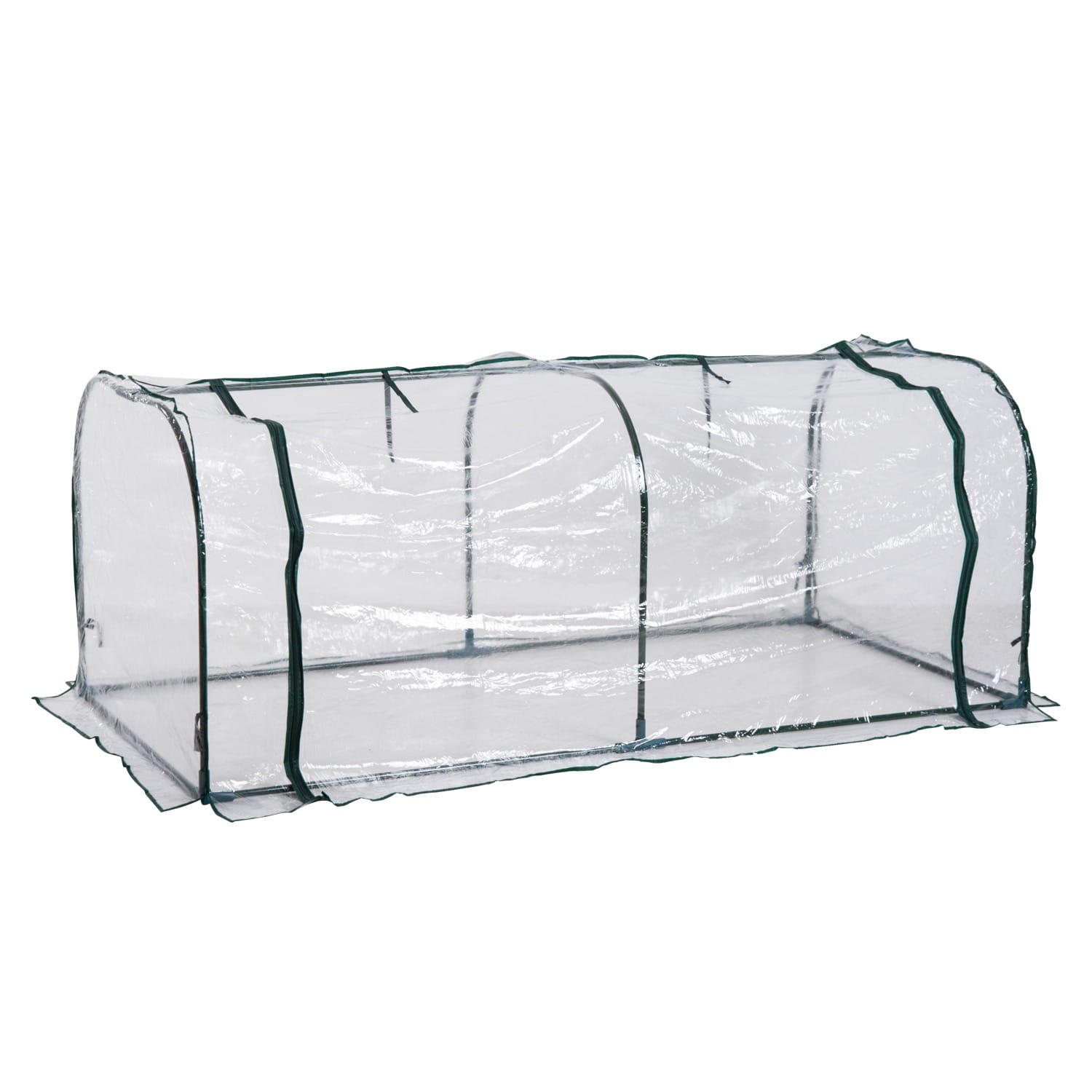 Grow plants, vegetables, fruit and flowers safely all year round with this long tunnel greenhouse from Outsunny. With a powder coated steel frame for strength and durability, it features a clear cover, helping to protect plants in all weather conditions whilst providing plenty of sunlight for them to nourish and grow. The cover also features double zipped doors, providing you easy access and ventilation throughout. Lightweight enough to be moved around, this greenhouse is perfect for gardens, patios, balconies and allotments.