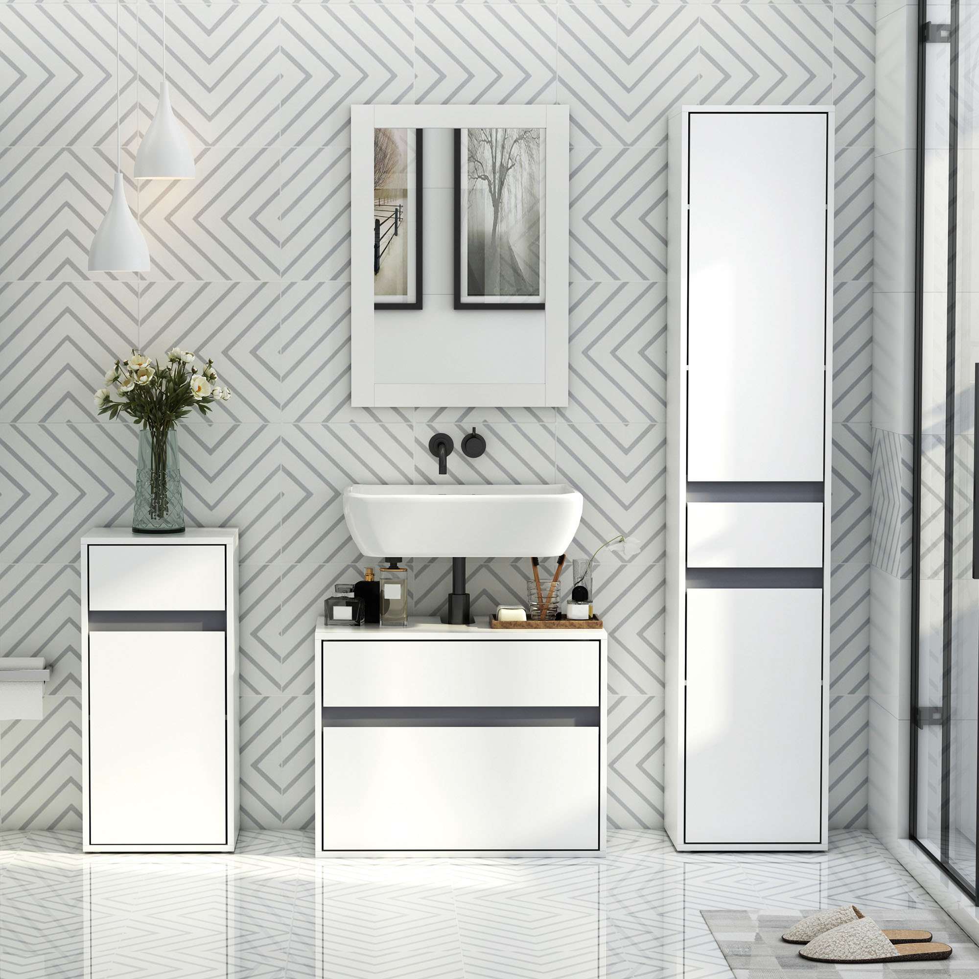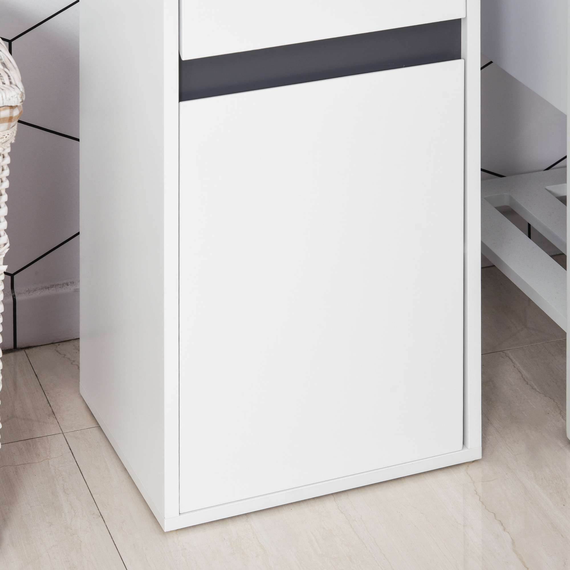 – Modern Minimalistic Bathroom Storage Cabinet Drawer Shelf White