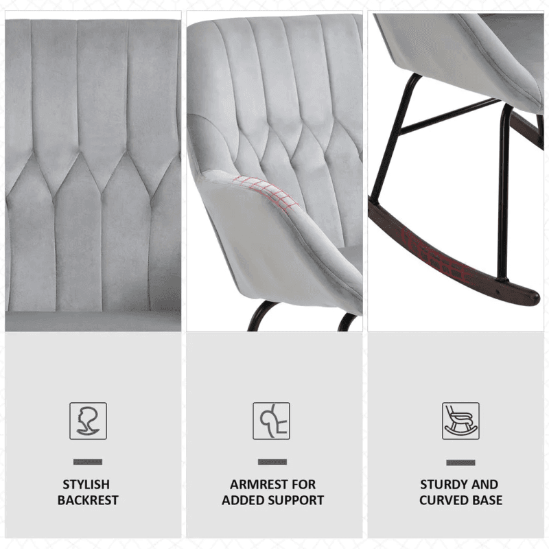 Modern chair update: Combines an accent chair with a rocking chair for a stand-out look in the home. Perfect for reading and relaxing.