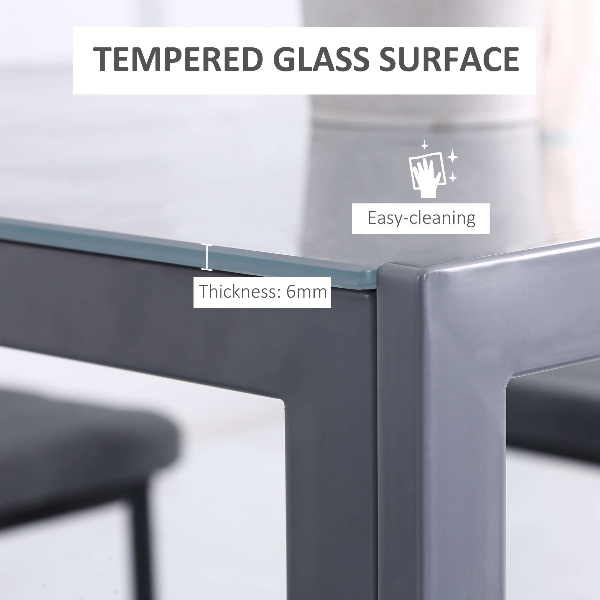 GLASS TABLE TOP: A sleek look to bring a modern feel into your dining areas, in the home and kitchen. Also ensures a solid and safe place to eat and drink from.