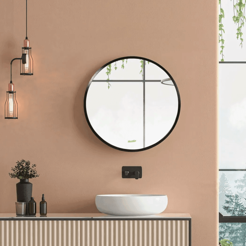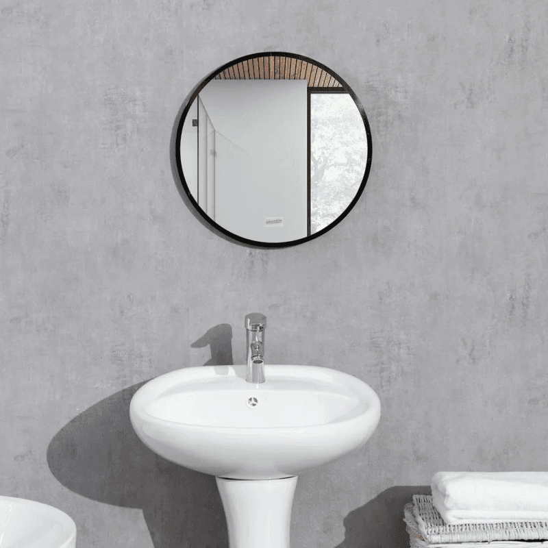 Round shape: A simple bathroom mirror, which will never go out of style. Bathroom wall mirror looks great all over the home, too: bedroom, hallway, living room and beyond.