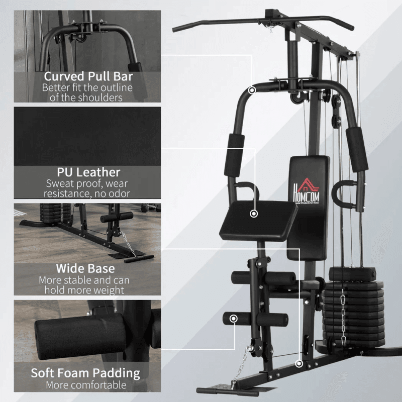 – Variety of exercises: This home multi gym is suitable for lat pull downs, pec fly, chest press, leg extensions and preacher pad curls – a thorough and balanced workout, great for strength training.