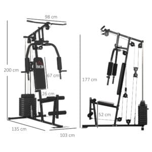 FULL BODY WORKOUT: Includes 45kg weight stacks, which can be customised according to skill level. You can work legs, arms, chest, shoulders, biceps, back and buttocks. A compact gym, perfect for home use.