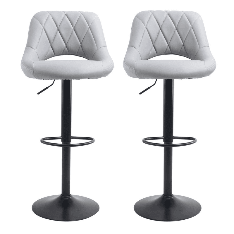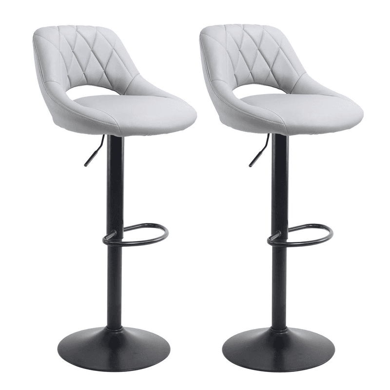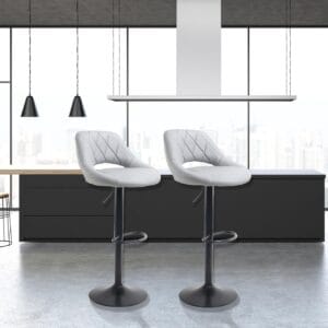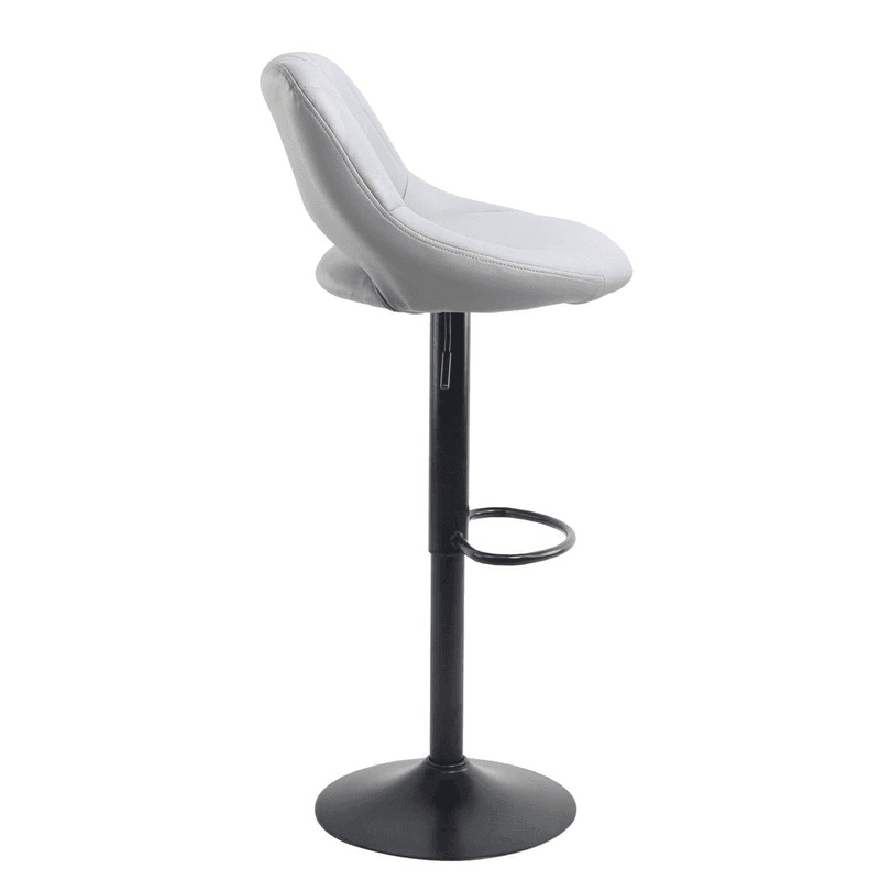 Upholstered in high quality faux leather, amply padded with a generous backrest for support. The seat stands on a chrome stem, with a variable height gas lift and 360 degree swivel mechanism. Added features include a chrome footrest and a sturdy circular, with a rubber ring beneath to protect your floor.