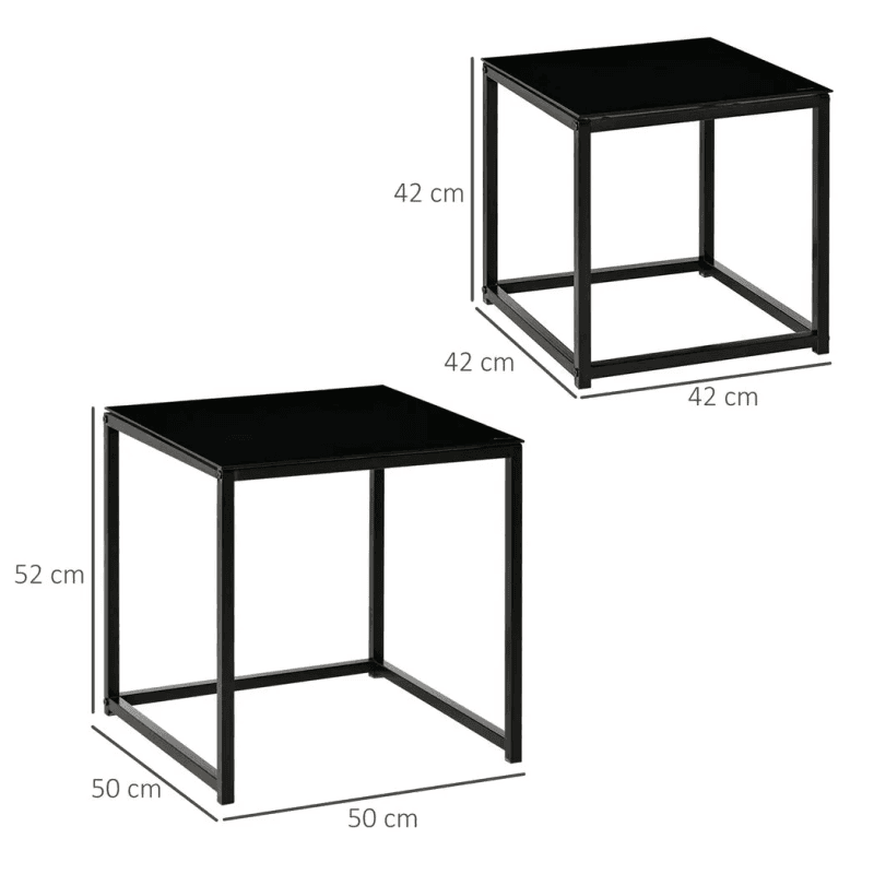 DIMENSIONS: Small table: 42H x 42L x 42Wcm. Large table: 52H x 50L x 50Wcm.