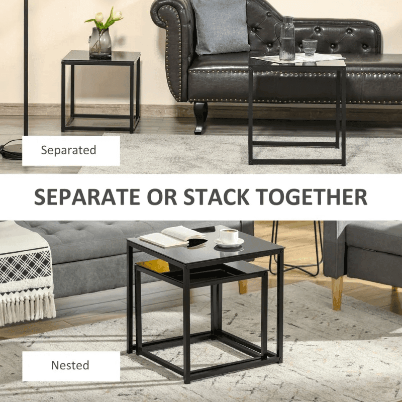 SET OF TWO: Twice the handy display and holding space. Nesting design – one larger than the other – lets small table fit underneath large for storage.
