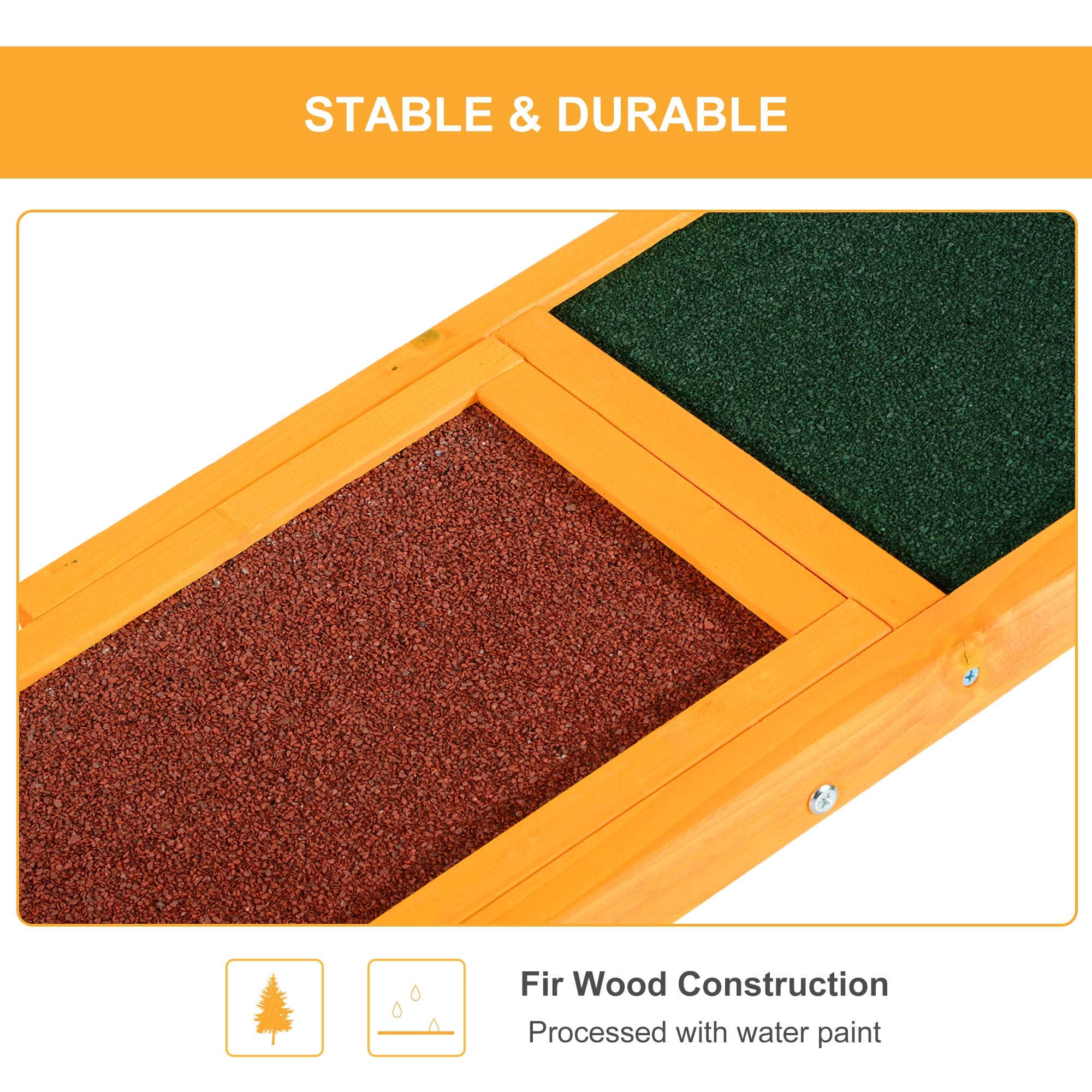 Made from high quality fir wood, Anti-slip sand grain asphalt felt on surface. Processed with outdoor environment protection water paint. Easy and quick to assemble. Overall Dimension: 180L x 30W x 30H (cm)