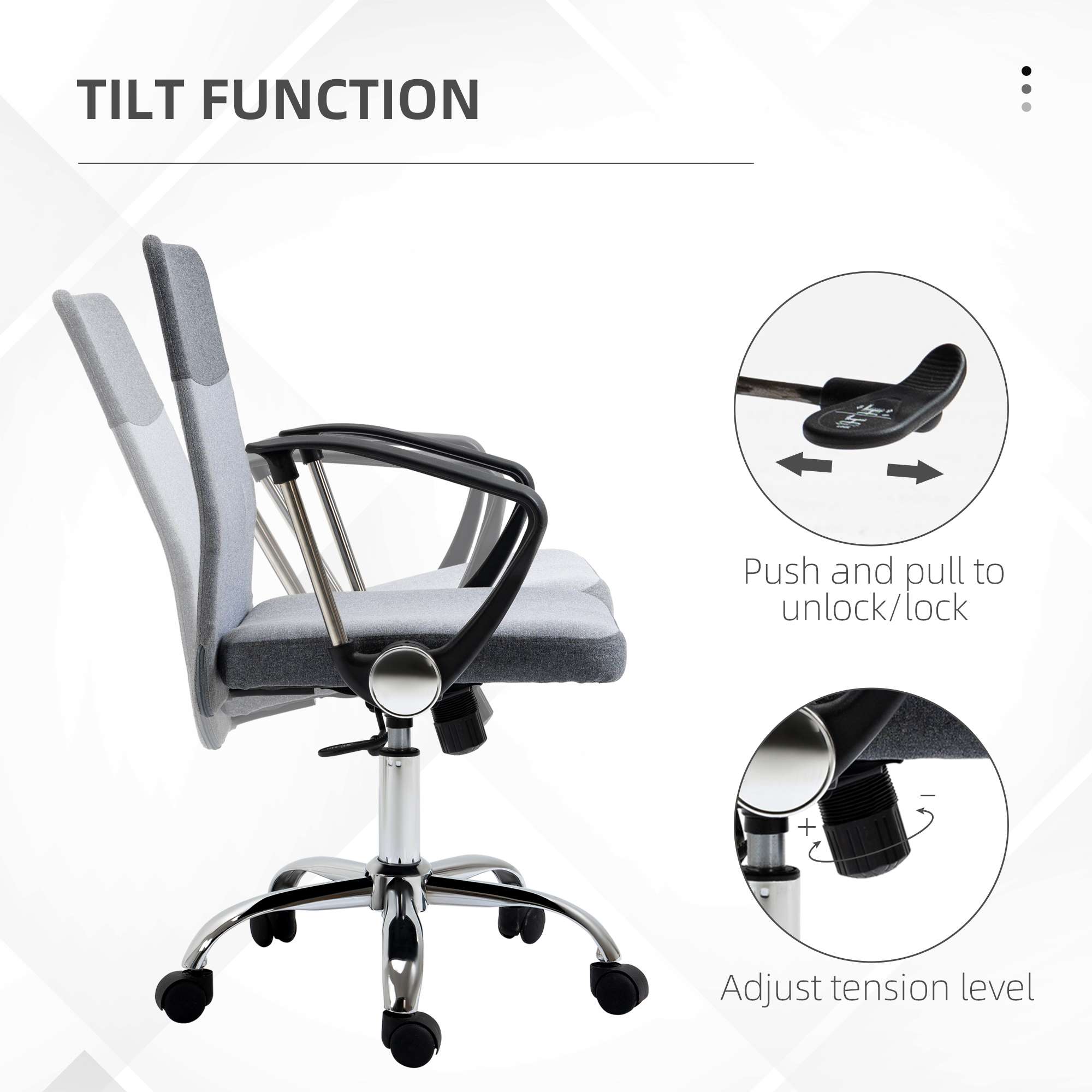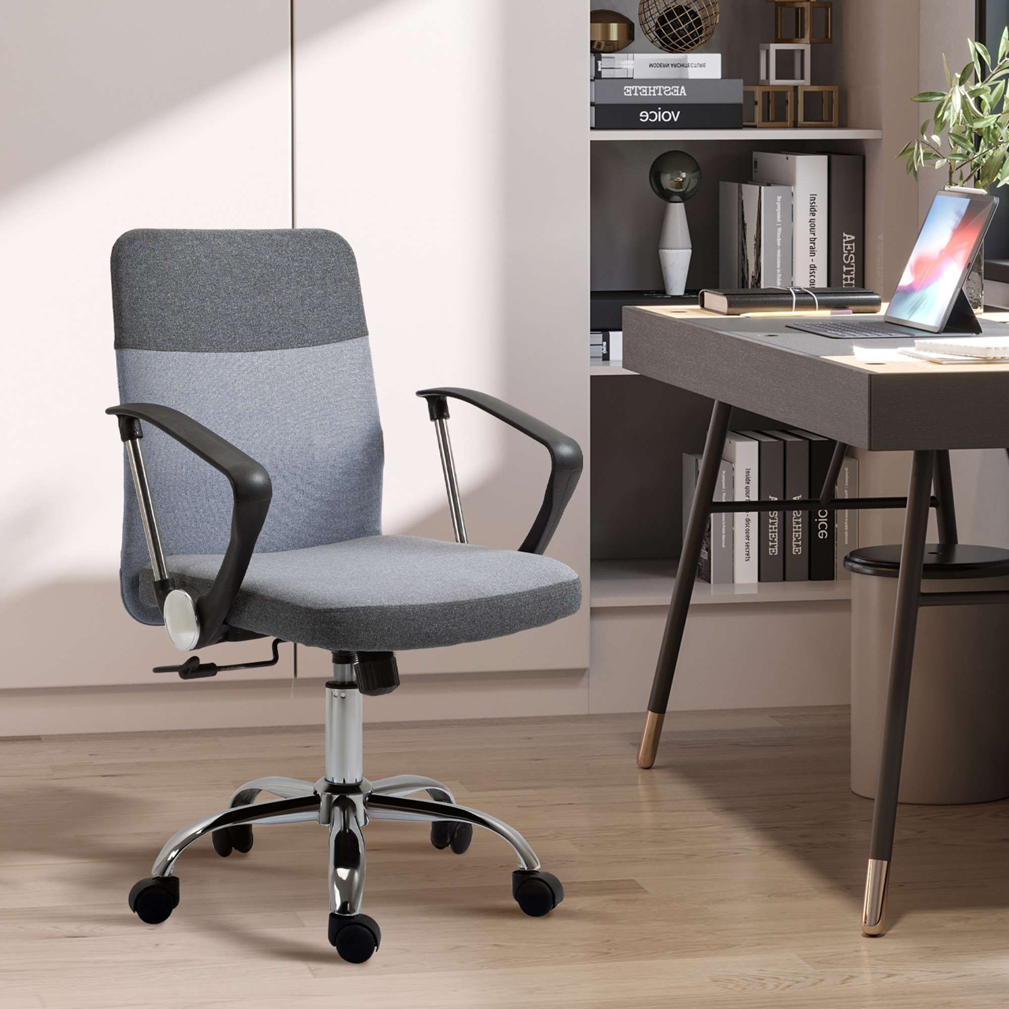 – Office Chair Linen Swivel Desk Chair Home Study Rocker w/ Wheel, Grey Vinsetto